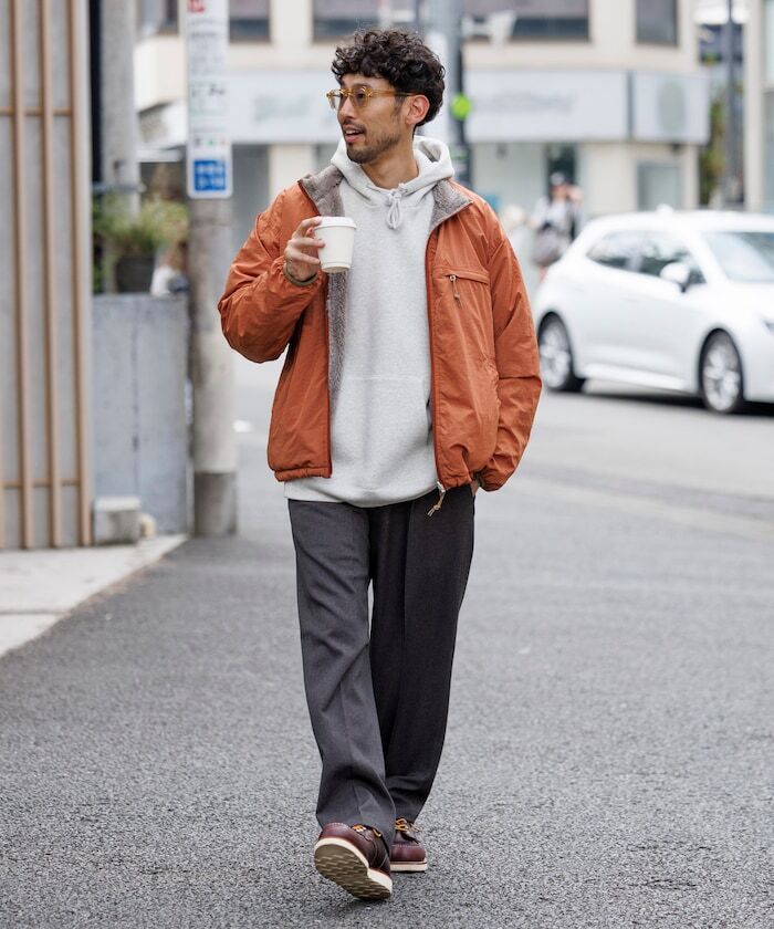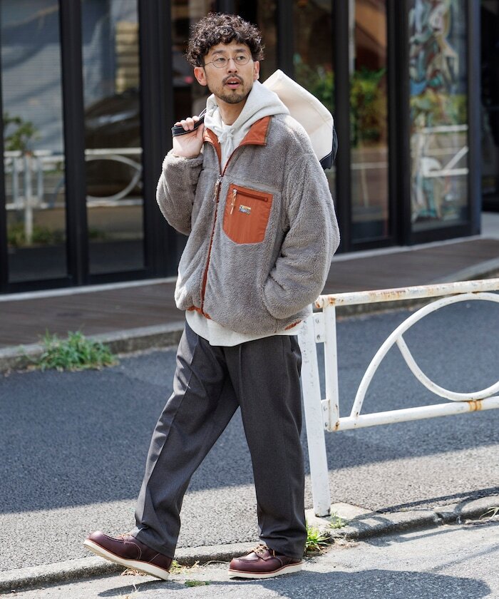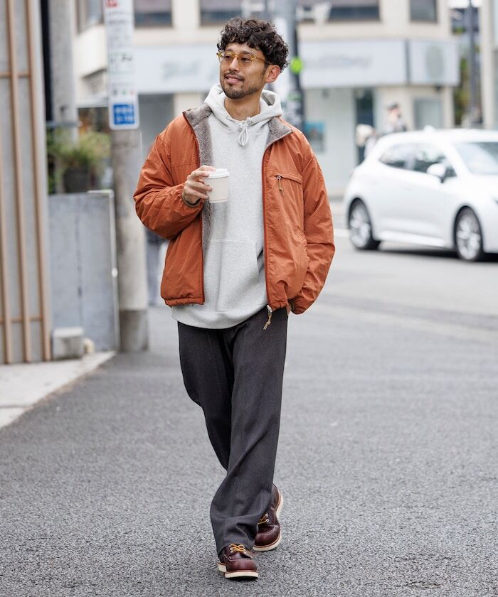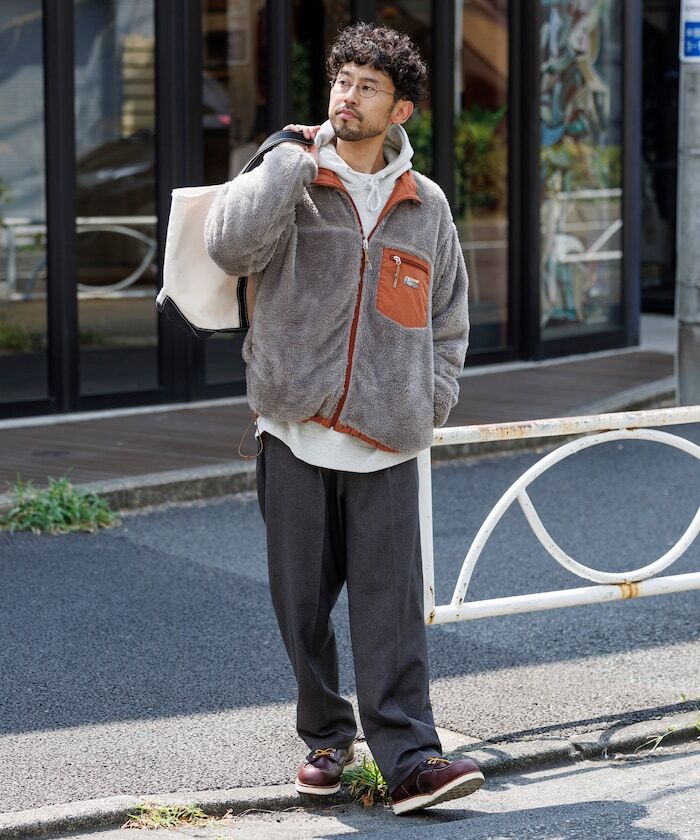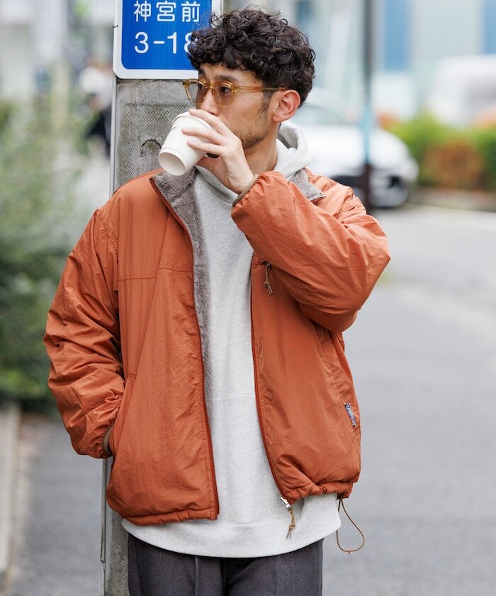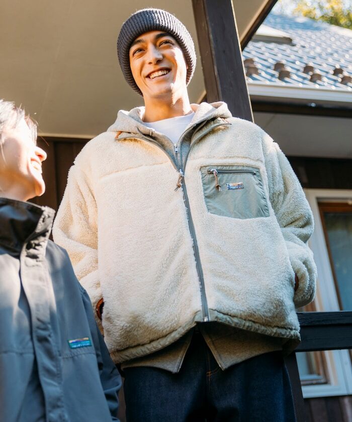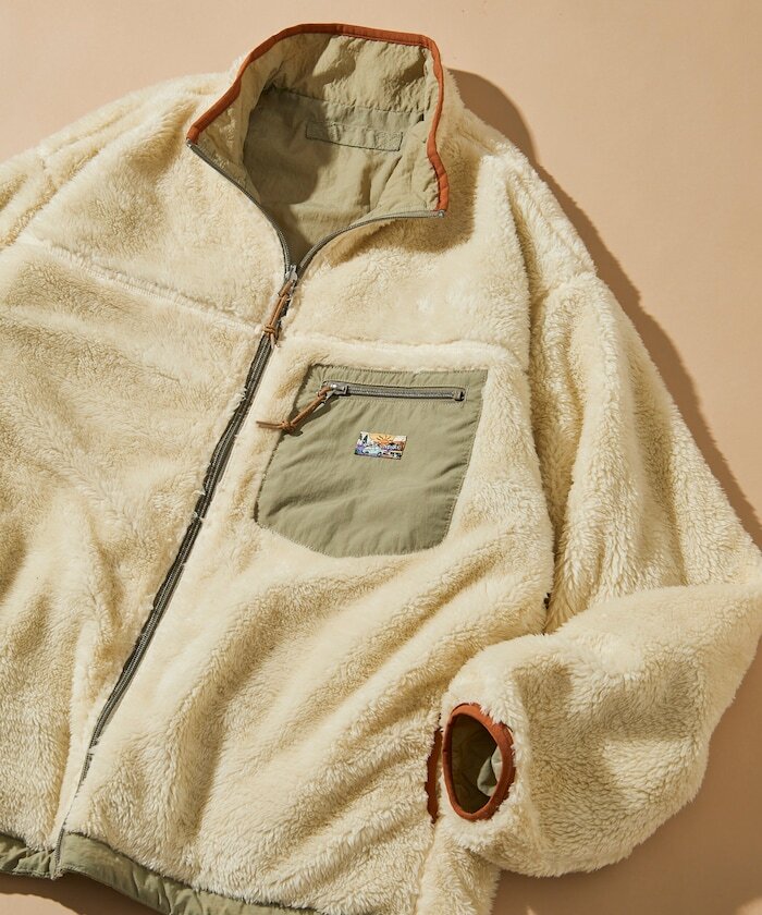 ● 採用具撥水加工、帶有光澤感的尼龍材質,搭配柔軟的刷毛內裡,打造可雙面穿著設計