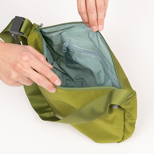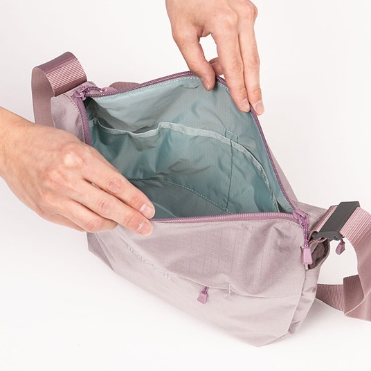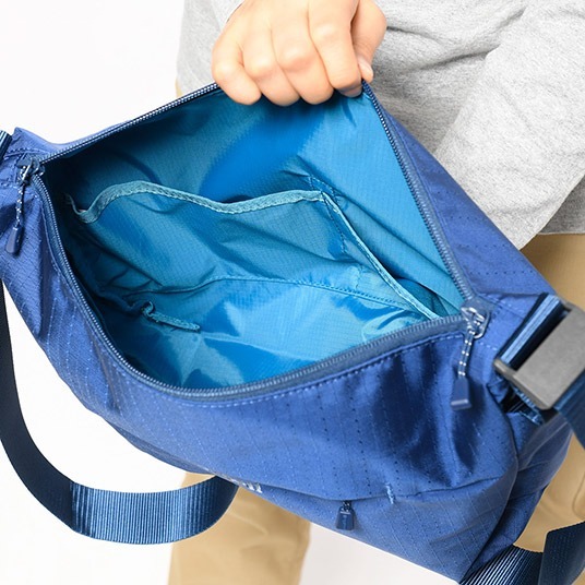 多餘的帶子可以存放在側袋中。有一個帶鑰匙帶的內部拉鍊口袋。
