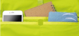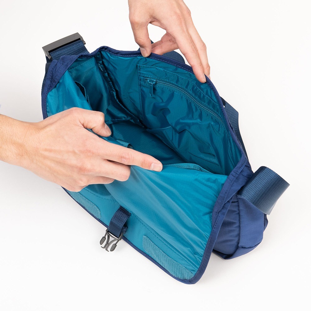 多餘的帶子可以存放在側袋中,有一個帶鑰匙鏈的內部拉鍊口袋。