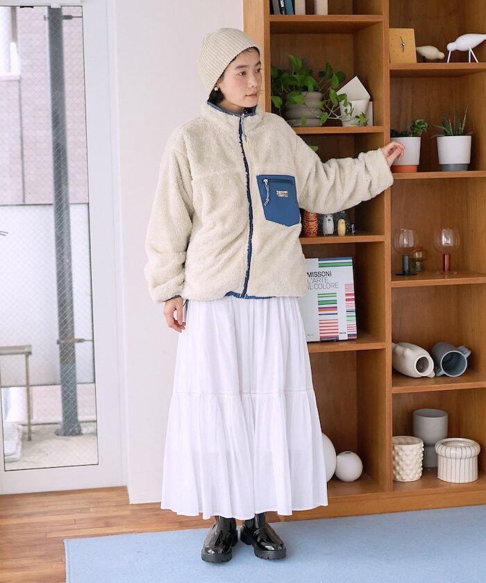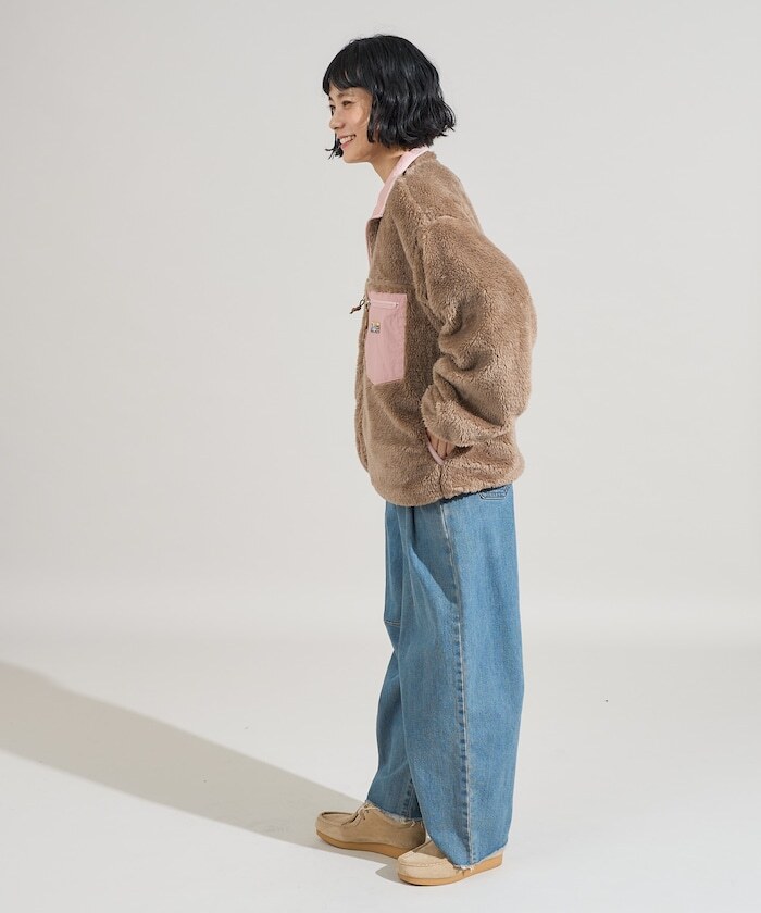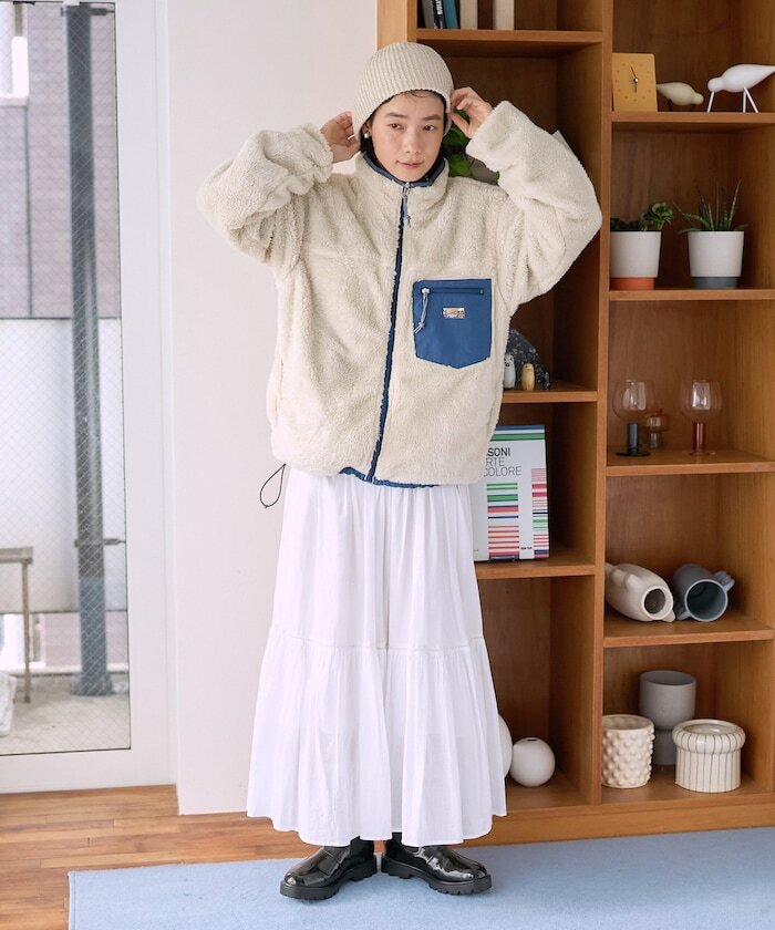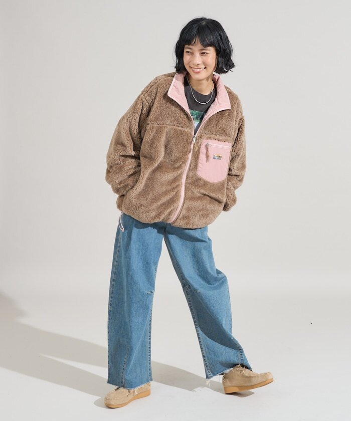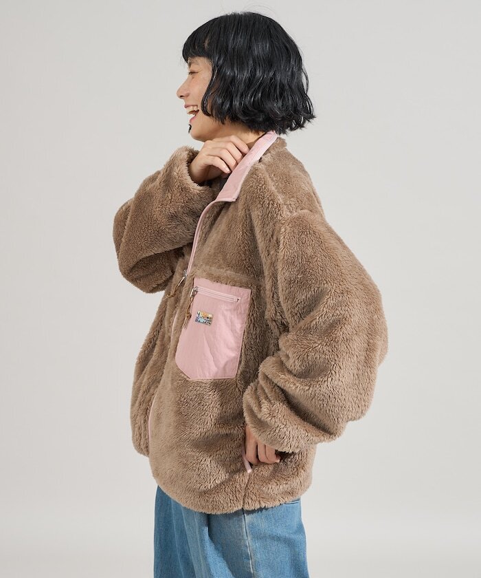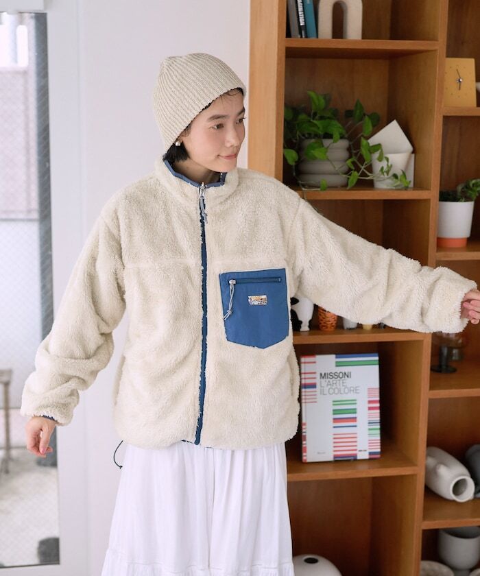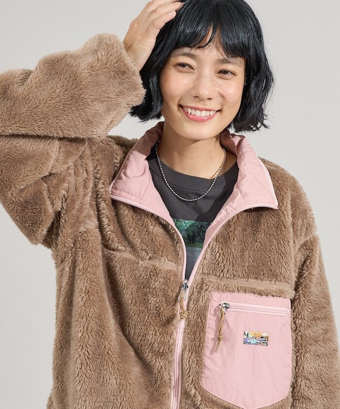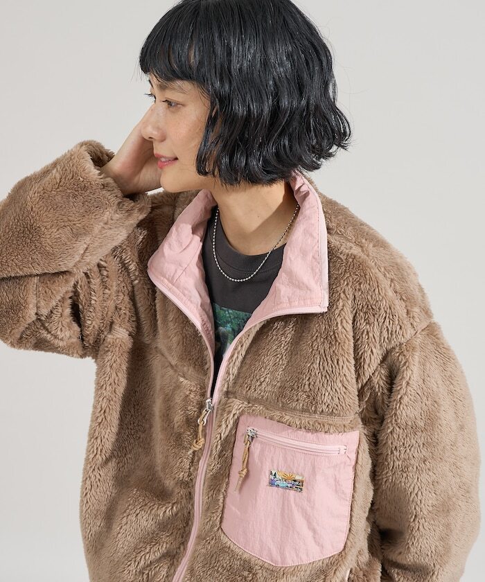 ● 亮眼搶眼的配色設計,結合刷毛與尼龍材質的可雙面穿著外套