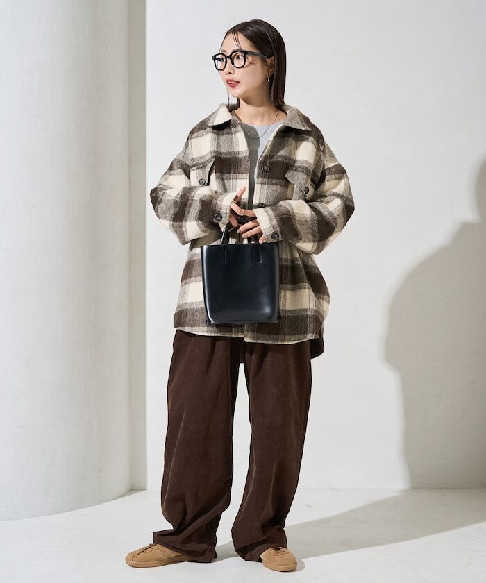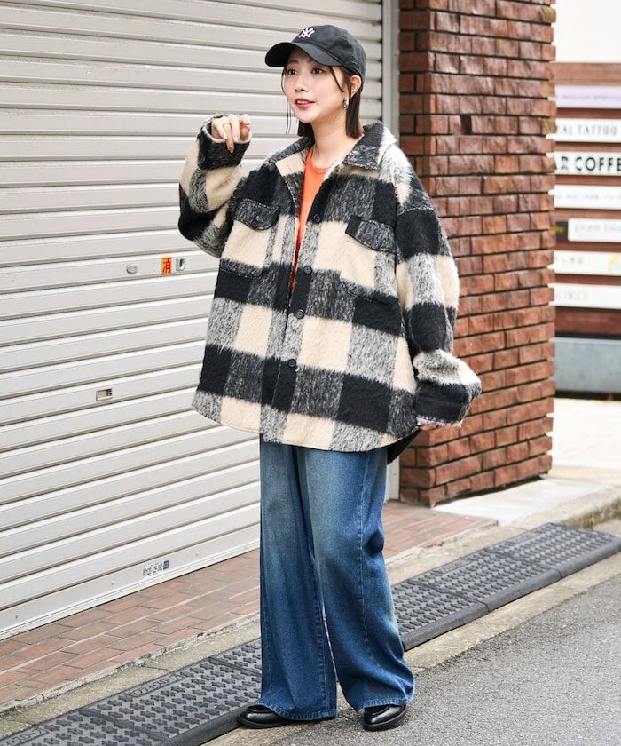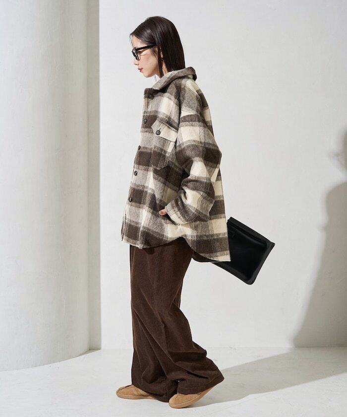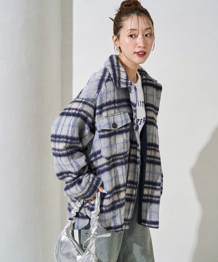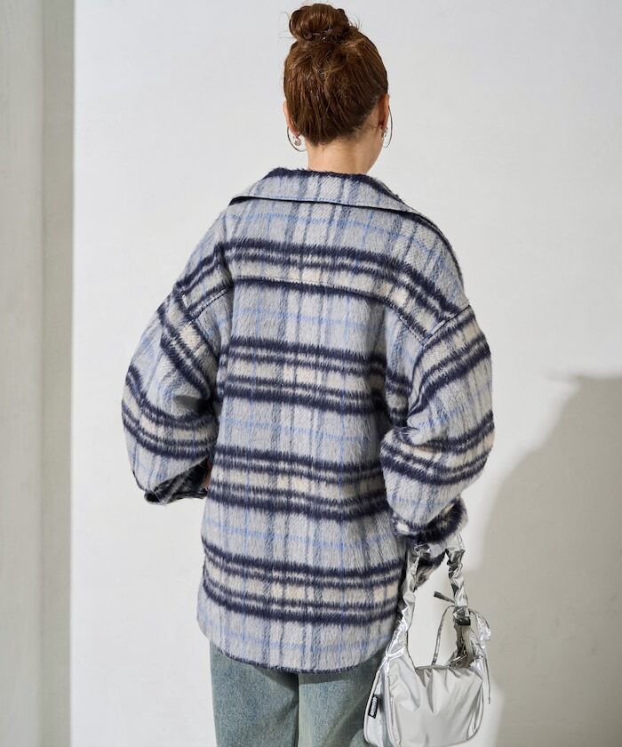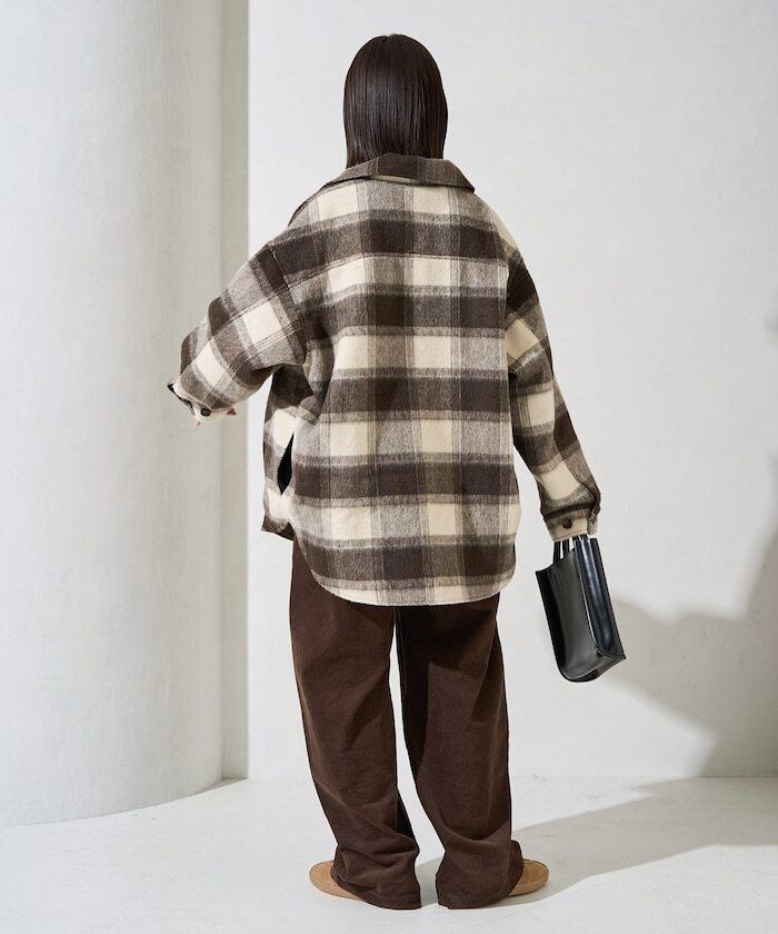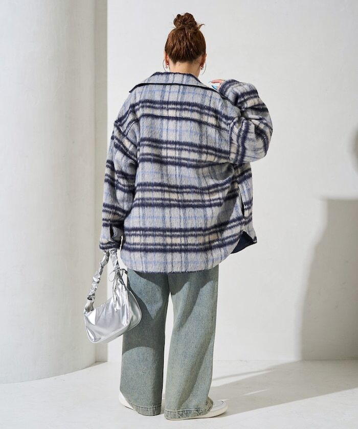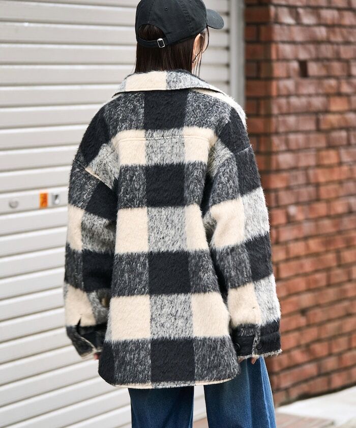 採用柔軟蓬鬆的刷毛(Shaggy)材質,觸感極佳的格紋襯衫式外套