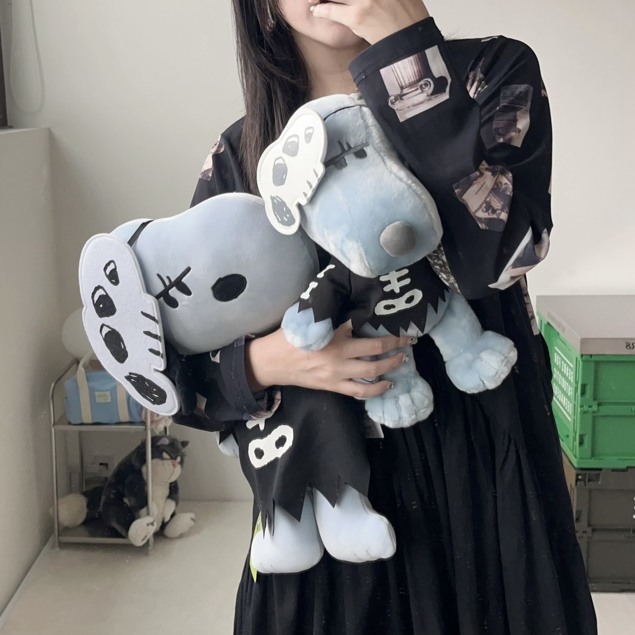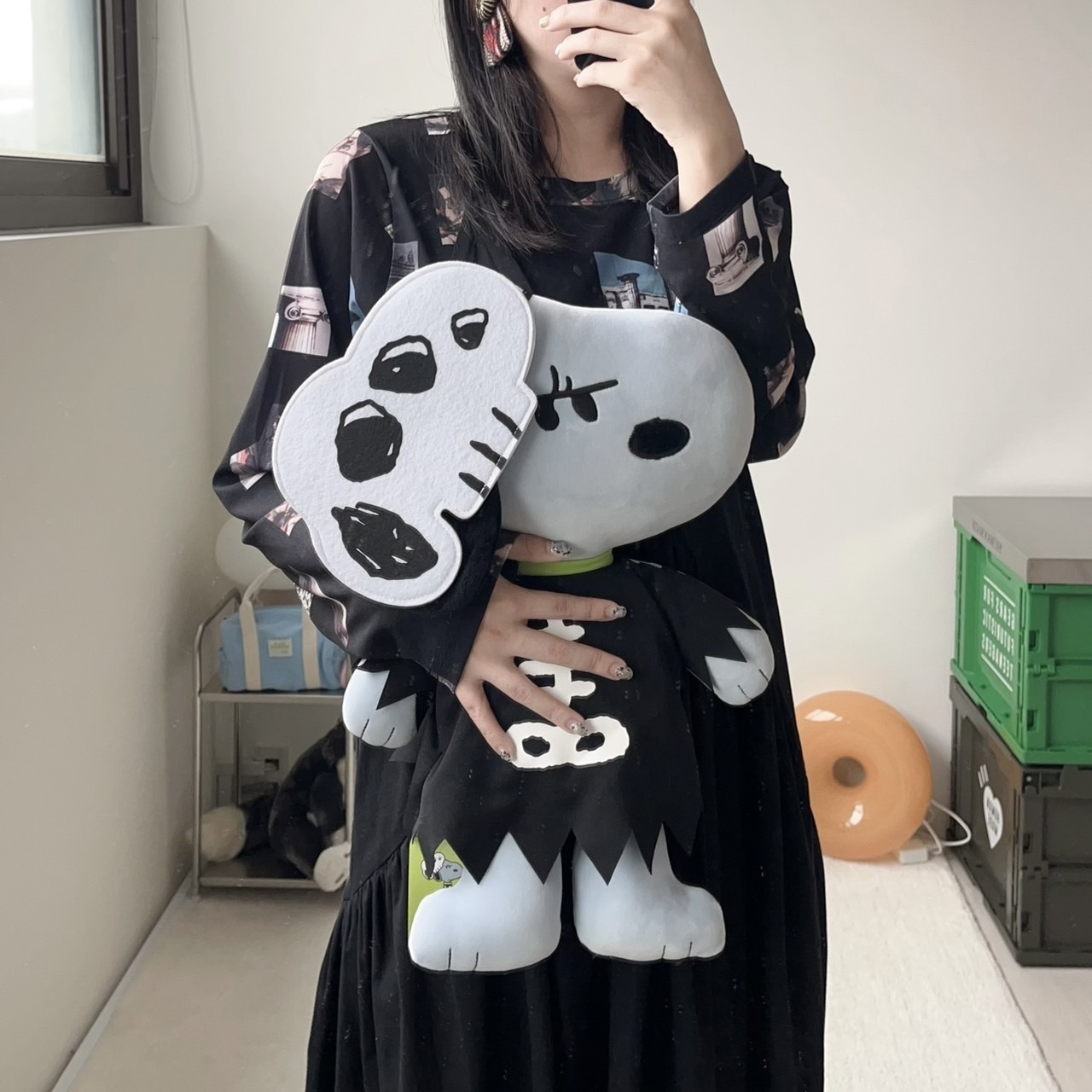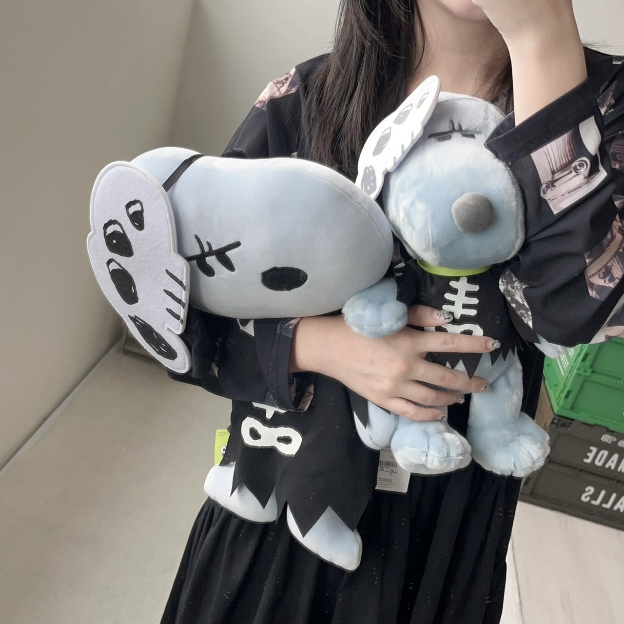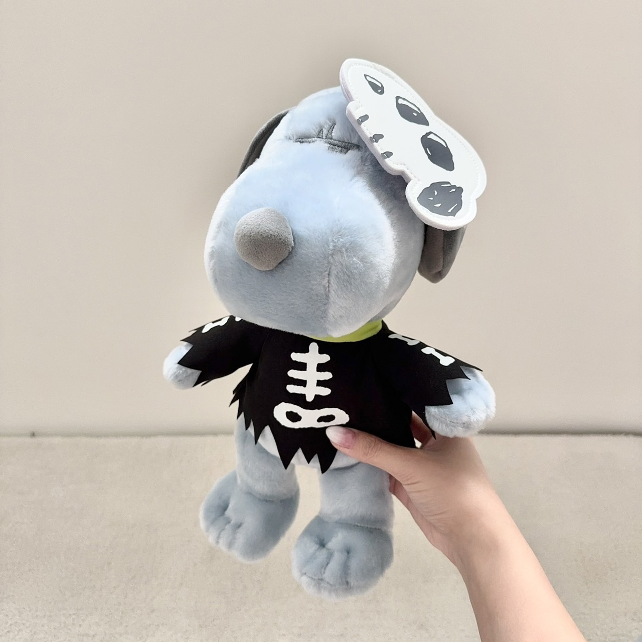 戴著骷髏面具的查理布朗跟史努比,面具與衣服花紋有夜光效果
