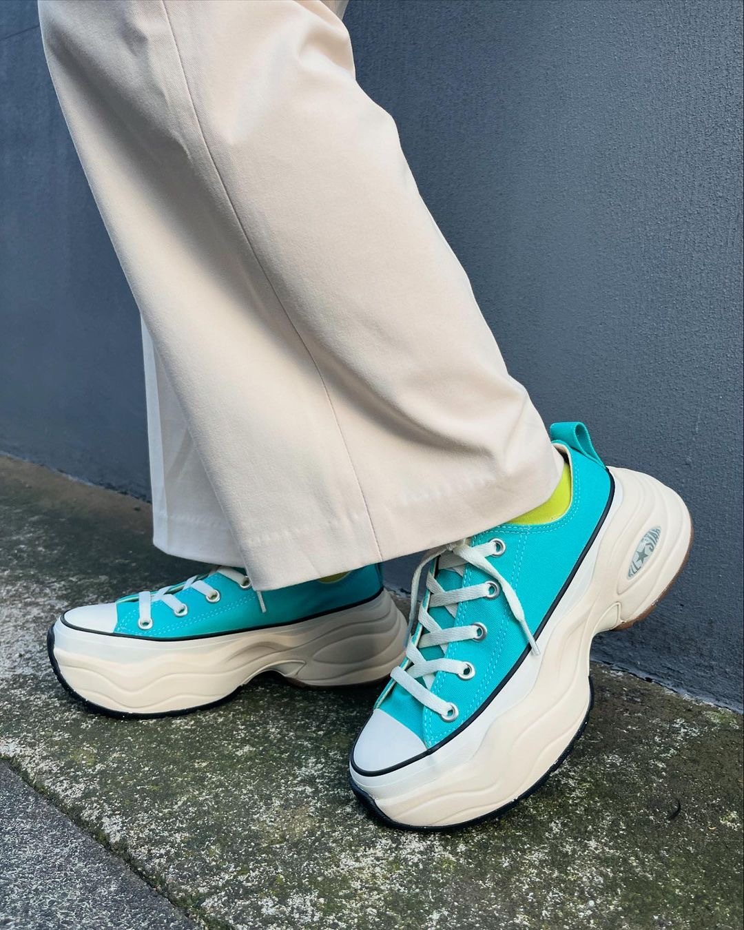 這是一款結合了ALL STAR鞋款和90年代訓練鞋為設計靈感的全新厚底鞋,展現出流線型且帶有復古運動風格的外觀。