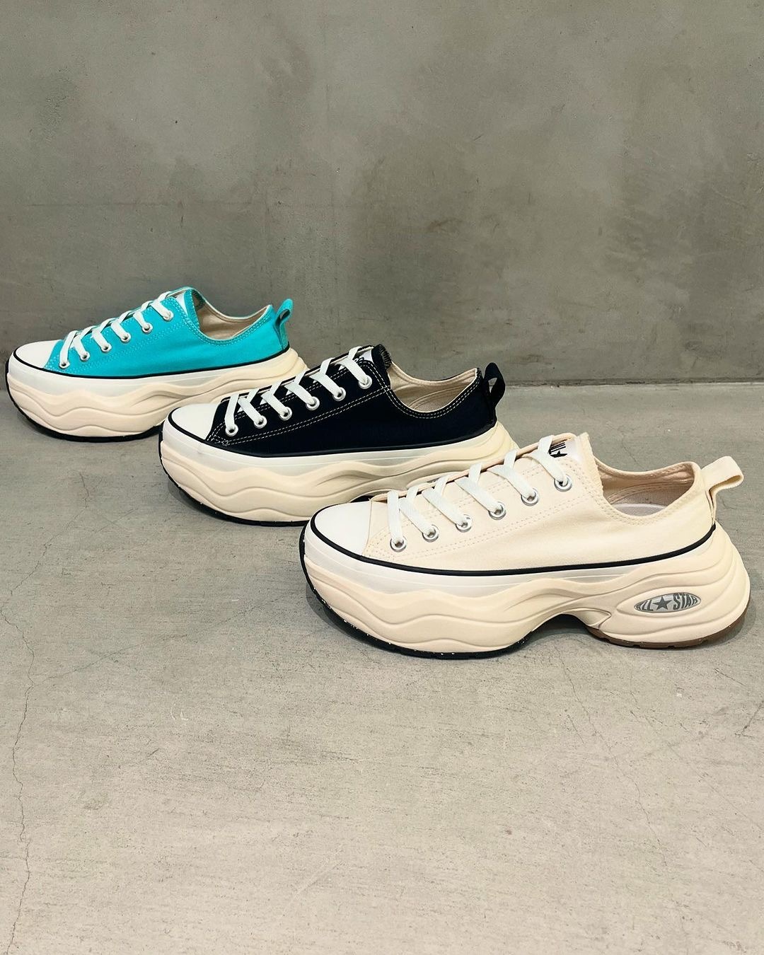 這是一款結合了ALL STAR鞋款和90年代訓練鞋為設計靈感的全新厚底鞋,展現出流線型且帶有復古運動風格的外觀。