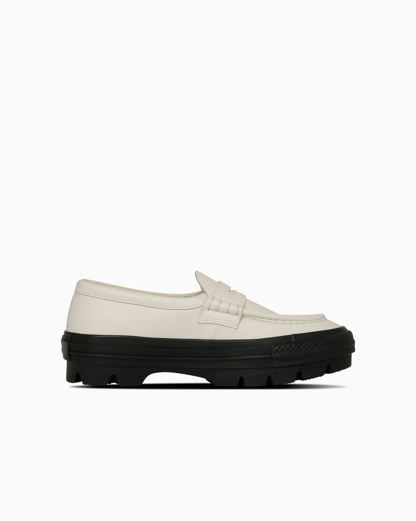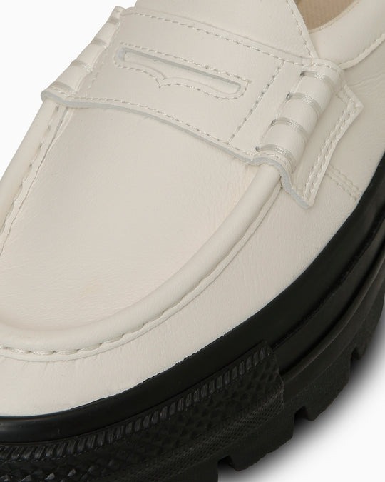 透過將樂福鞋與厚底厚底結合並使用合成皮革