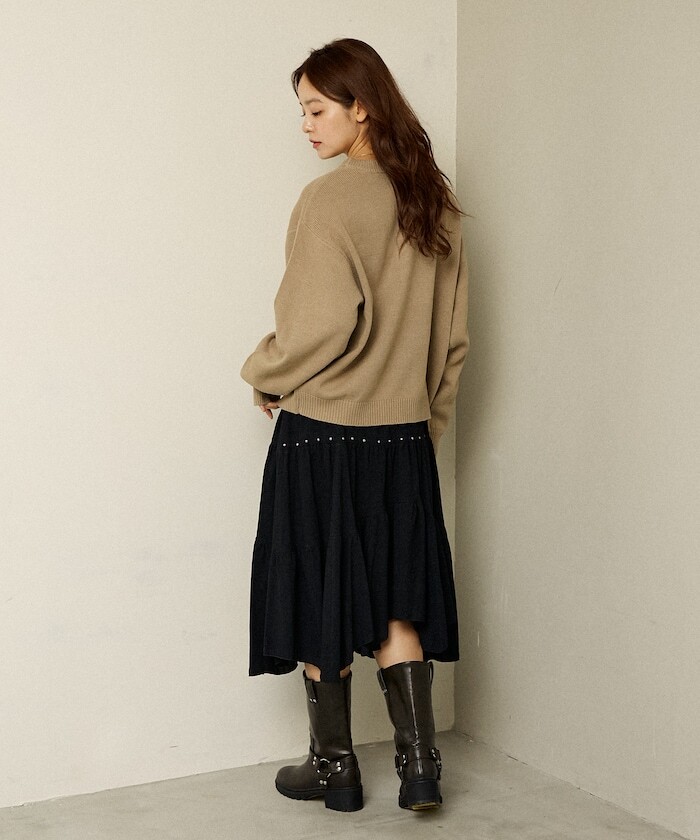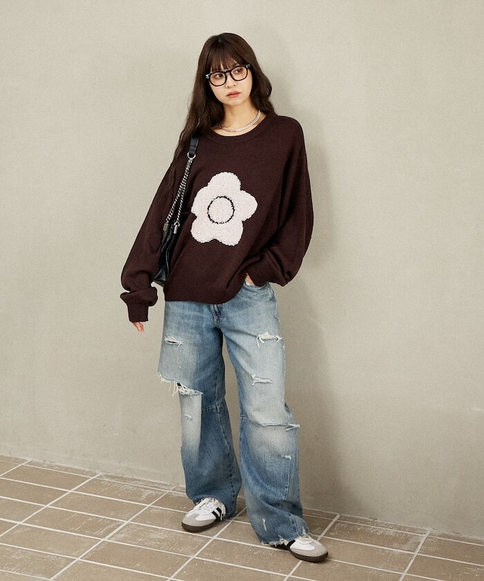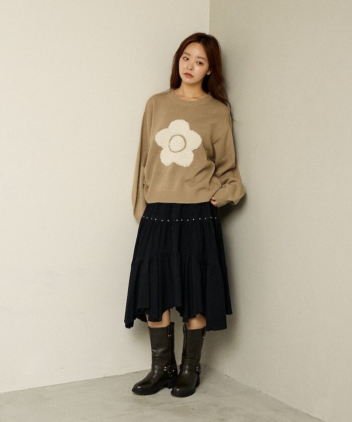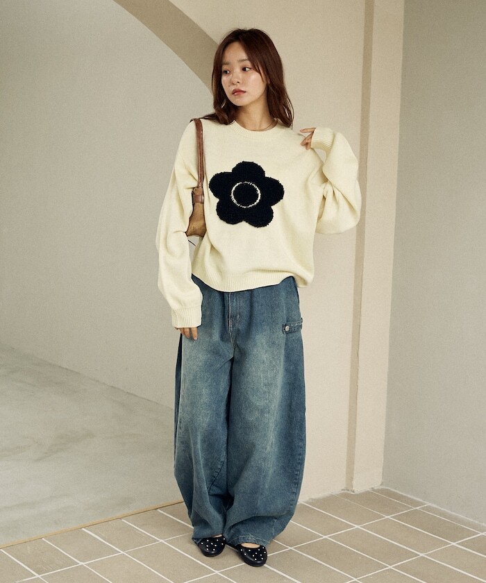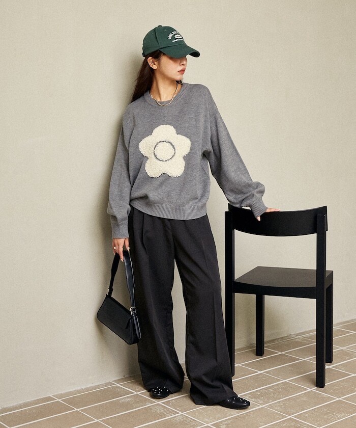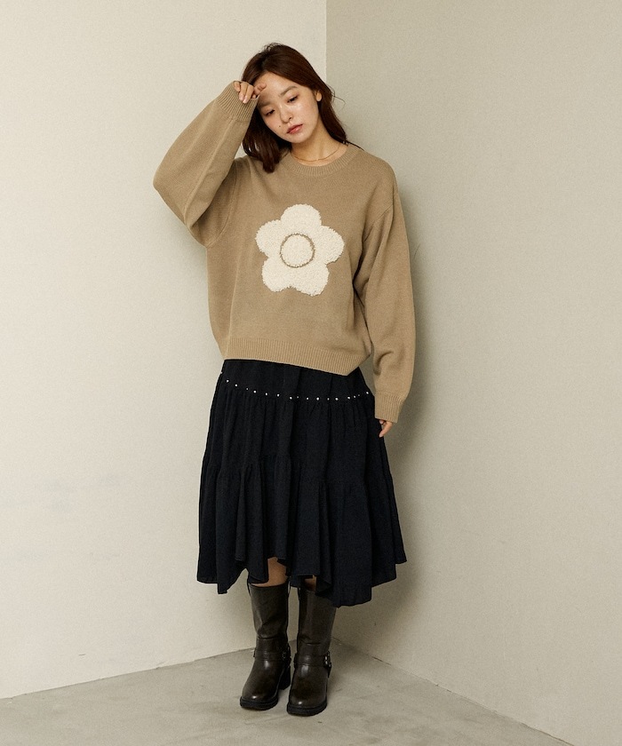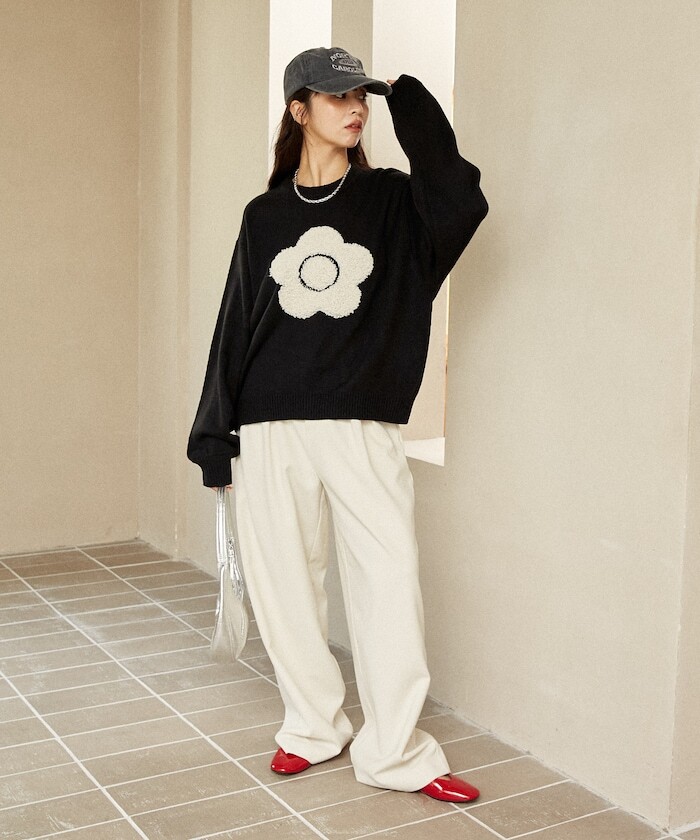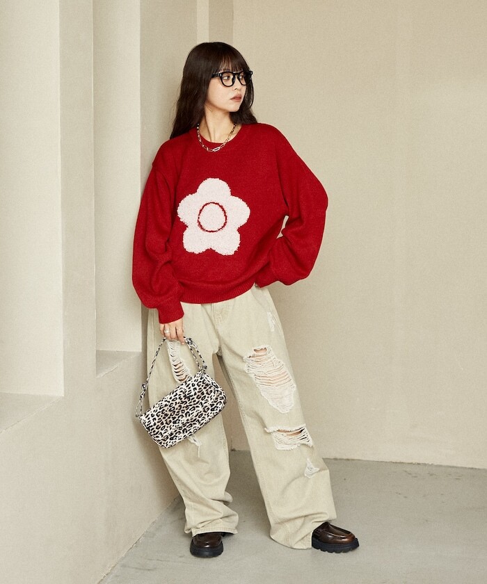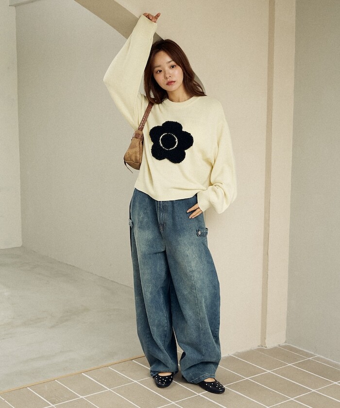 ● 以 MARY QUANT 招牌花朵圖案為主角,採用相良刺繡製作,營造突出存在感的重點針織上衣