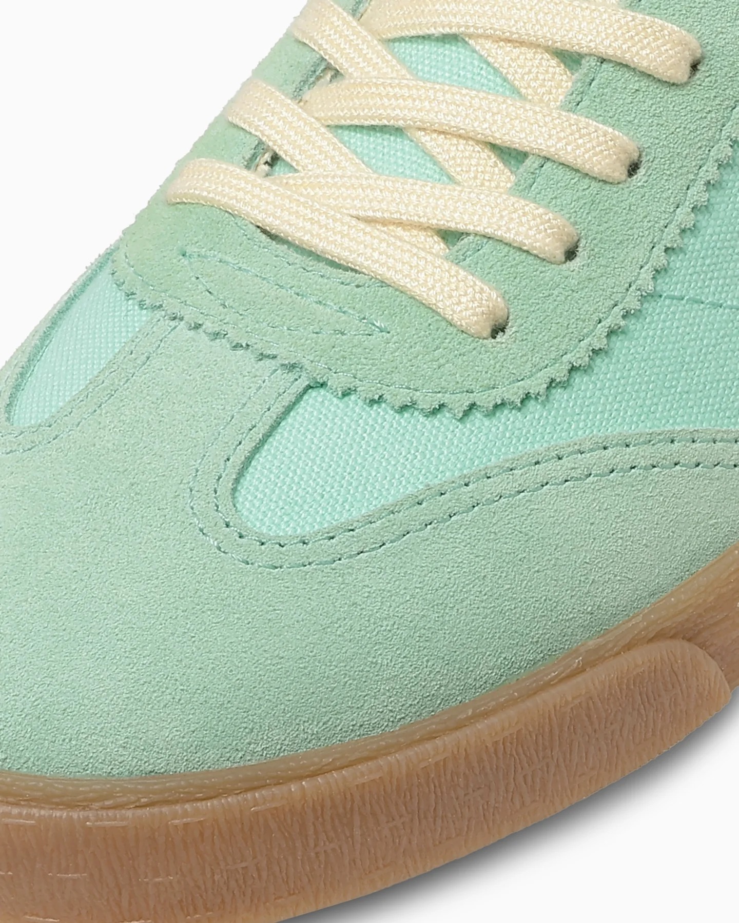 採用帆布材質鞋面,並於鞋頭與後跟加入麂皮設計,提升整體耐用性。
