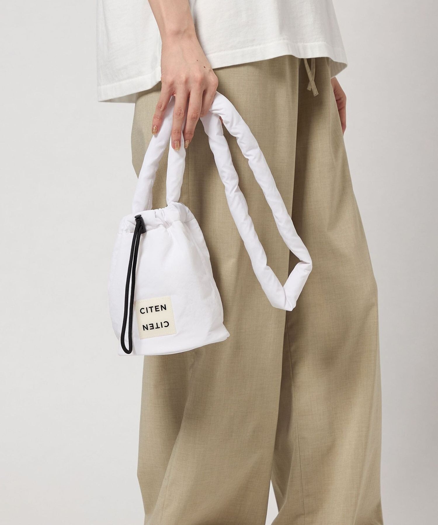 這款迷你肩背包使用具有霧面質感的「沙沙」感防潑水布料製成,搭配 CITEN 標誌點綴,兼具實用與設計感。