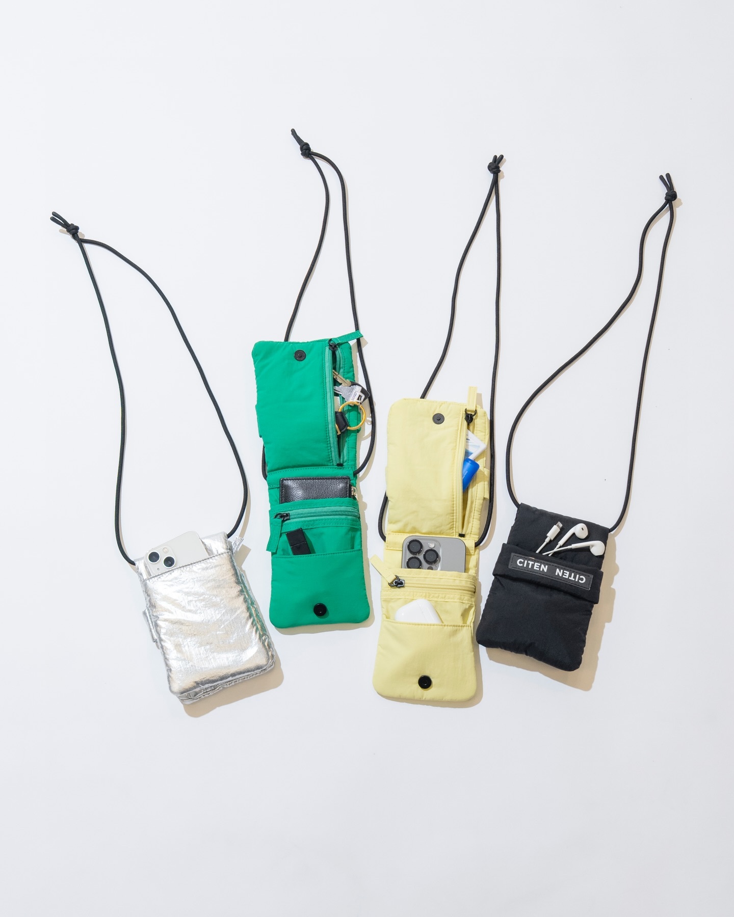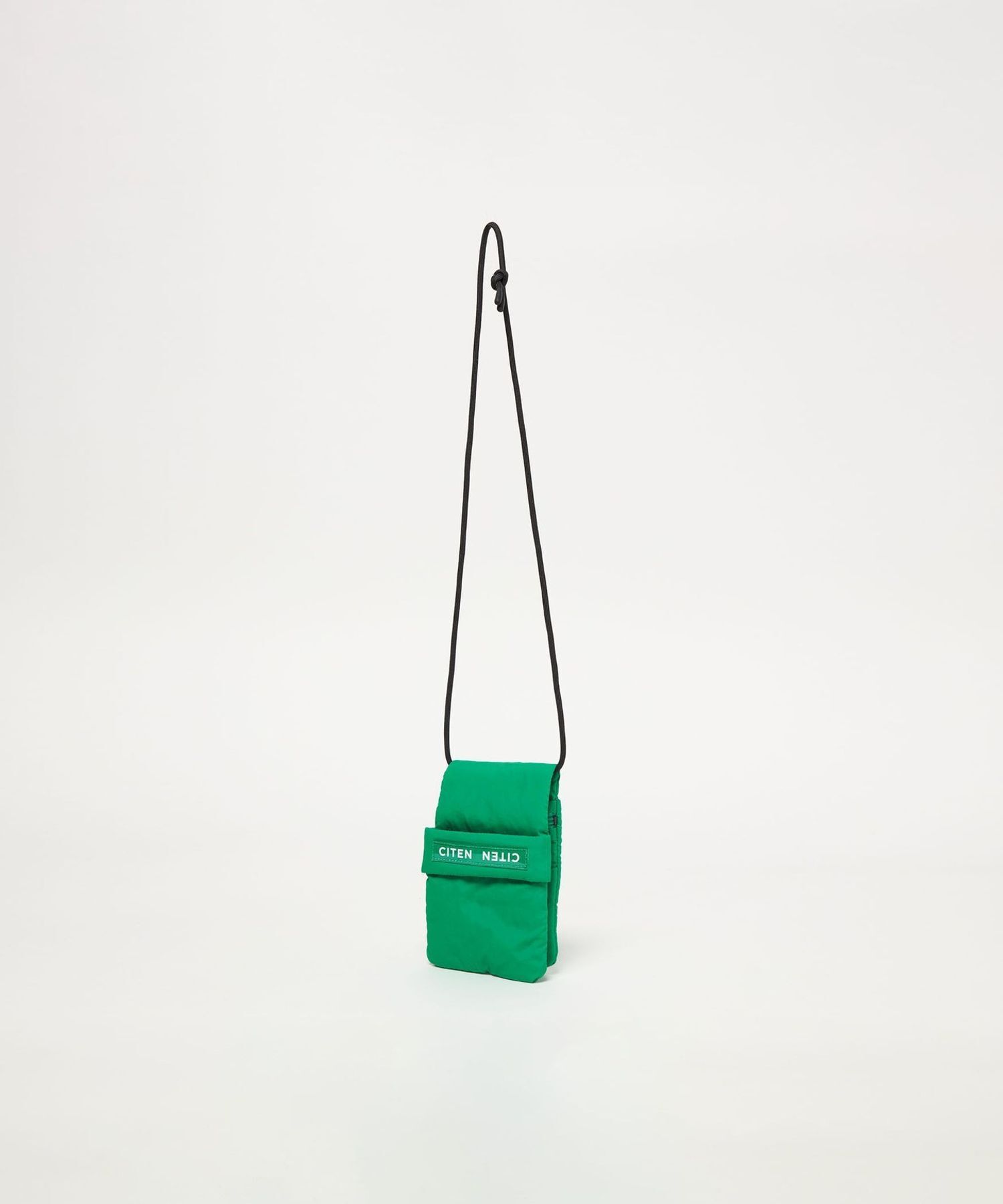 附有透明 LOGO 的澎軟背帶相當吸睛的手機斜背包。