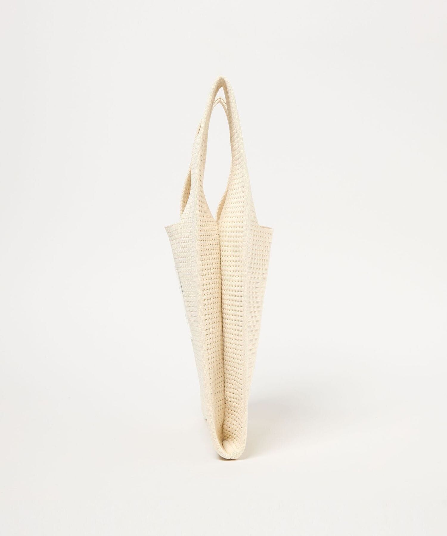 這款針織購物袋採用透氣編織設計,呈現輕盈自然的夏季感。