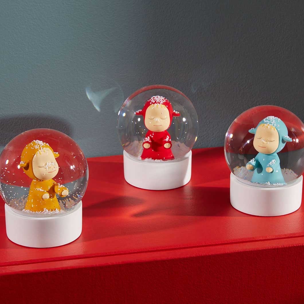這款雪景球以奈良美智1999年的雕塑作品《Little Pilgrims (Night Walking)》為靈感,展現了其中角色「Little Wanderer(小小漫遊者)」的身影。玻璃製圓頂內的小雕像安置於簡約的橡膠木底座上,白色雪花飄落時如夢似幻,無論季節皆可作為桌上裝飾欣賞。