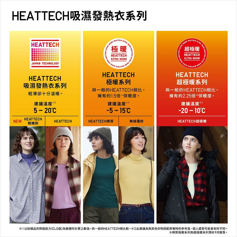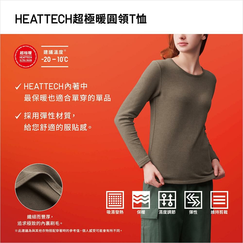 與一般的「HEATTECH」材質相比,擁有約2.25倍※保暖度的「超極暖」。彈性材質,方便運用於層次穿搭。