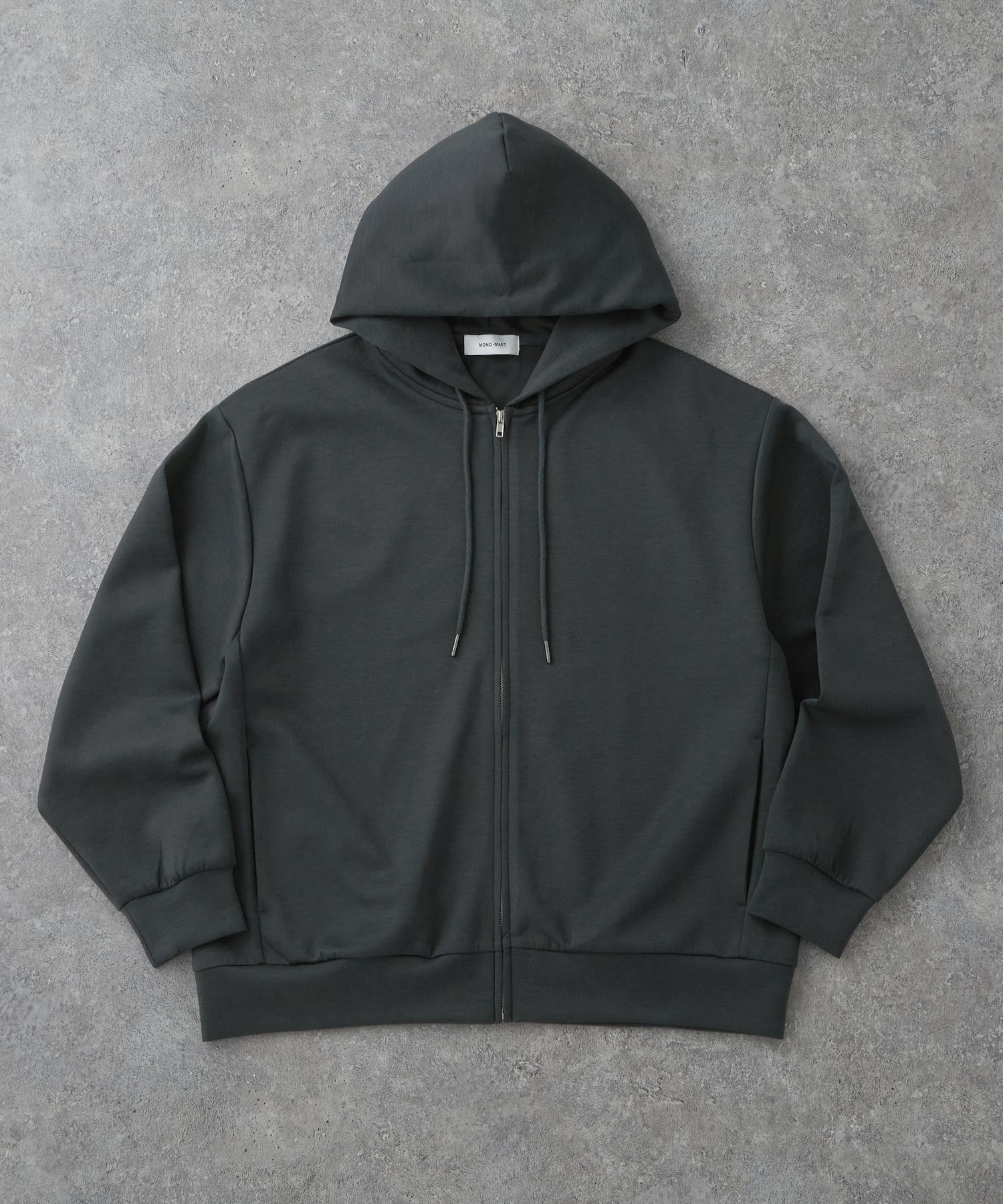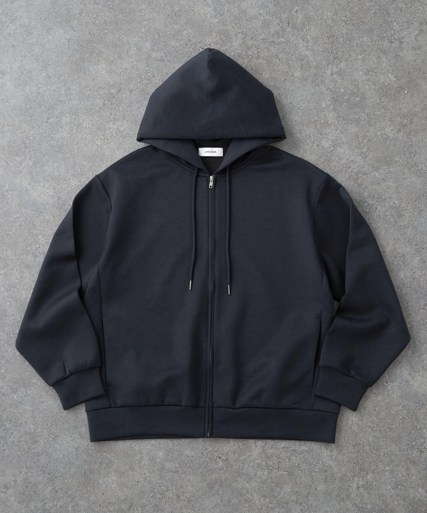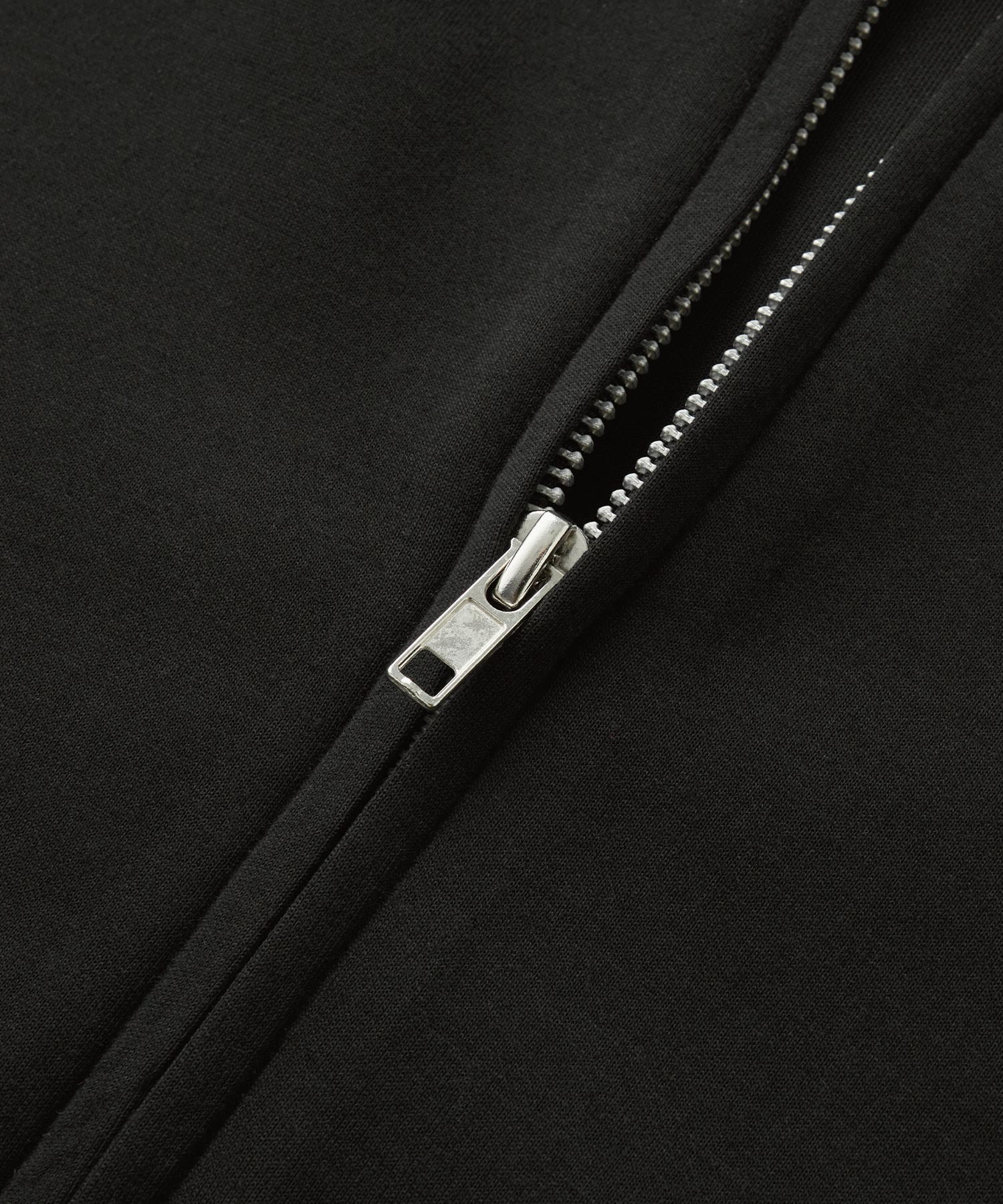 前襟拉鍊與抽繩尾端金屬配件皆統一為霧面銀色,細節質感滿分
