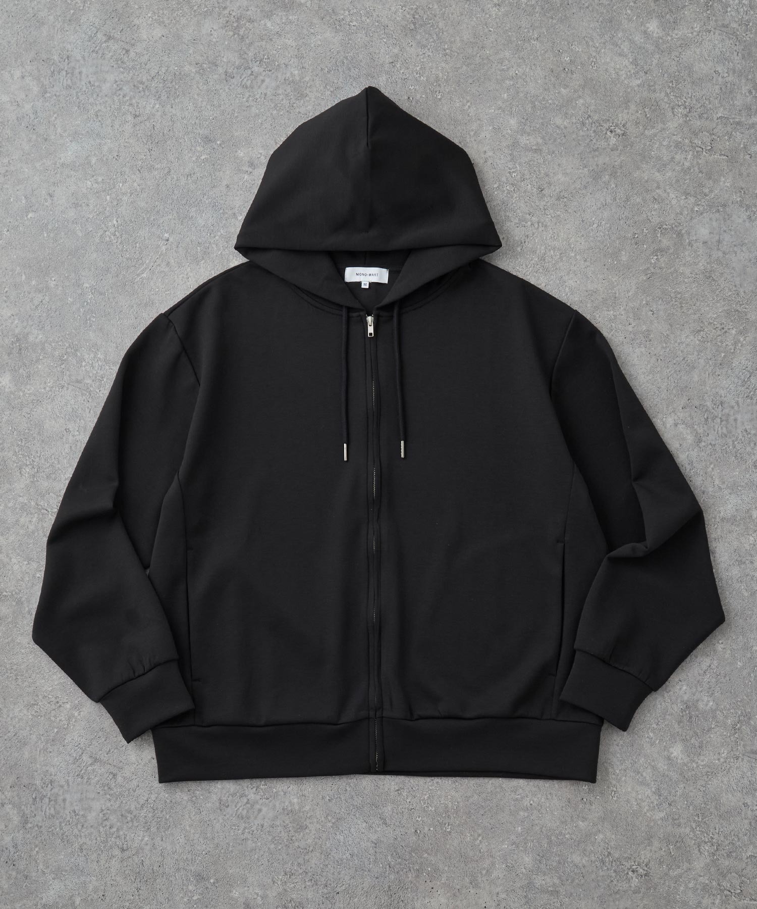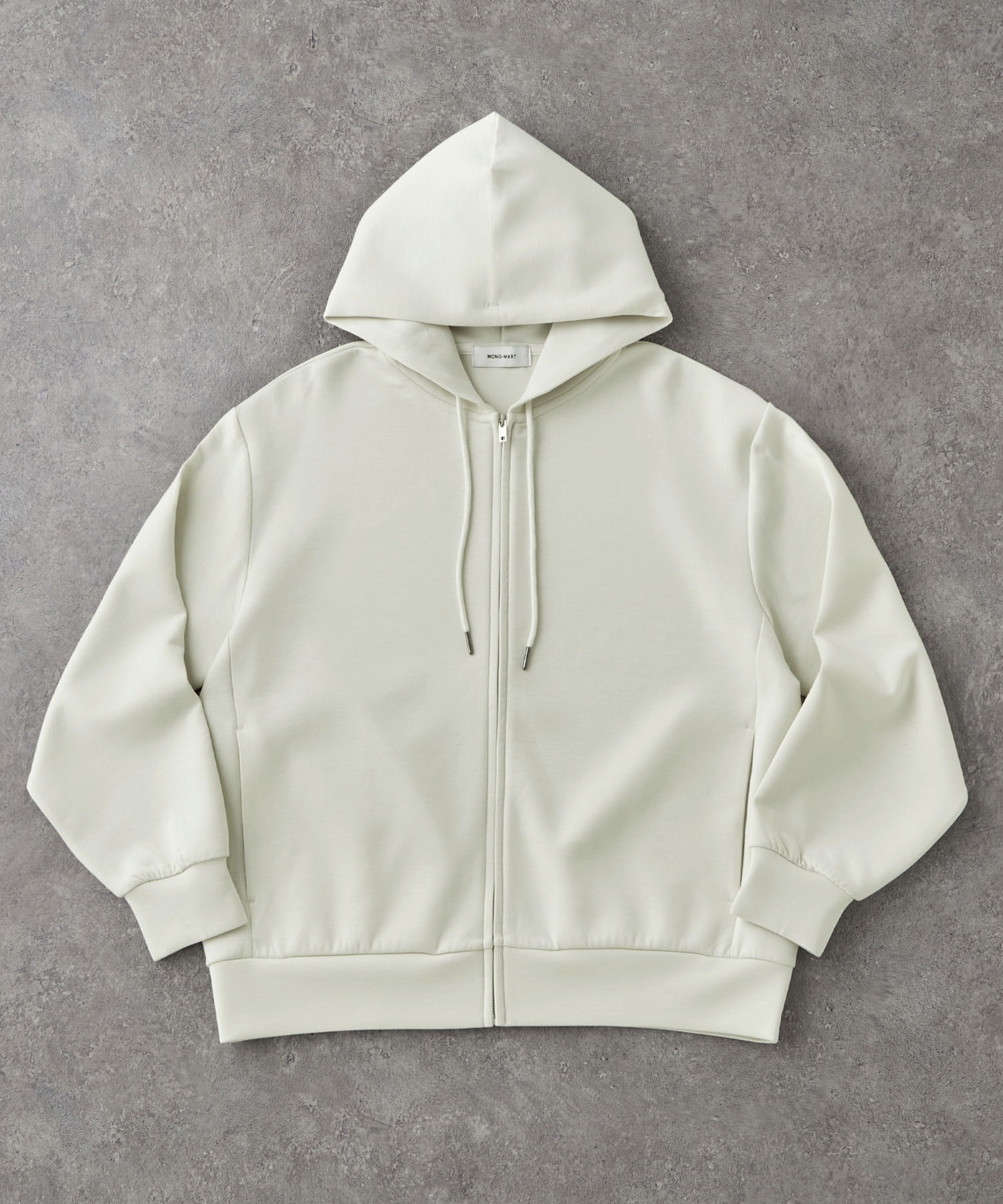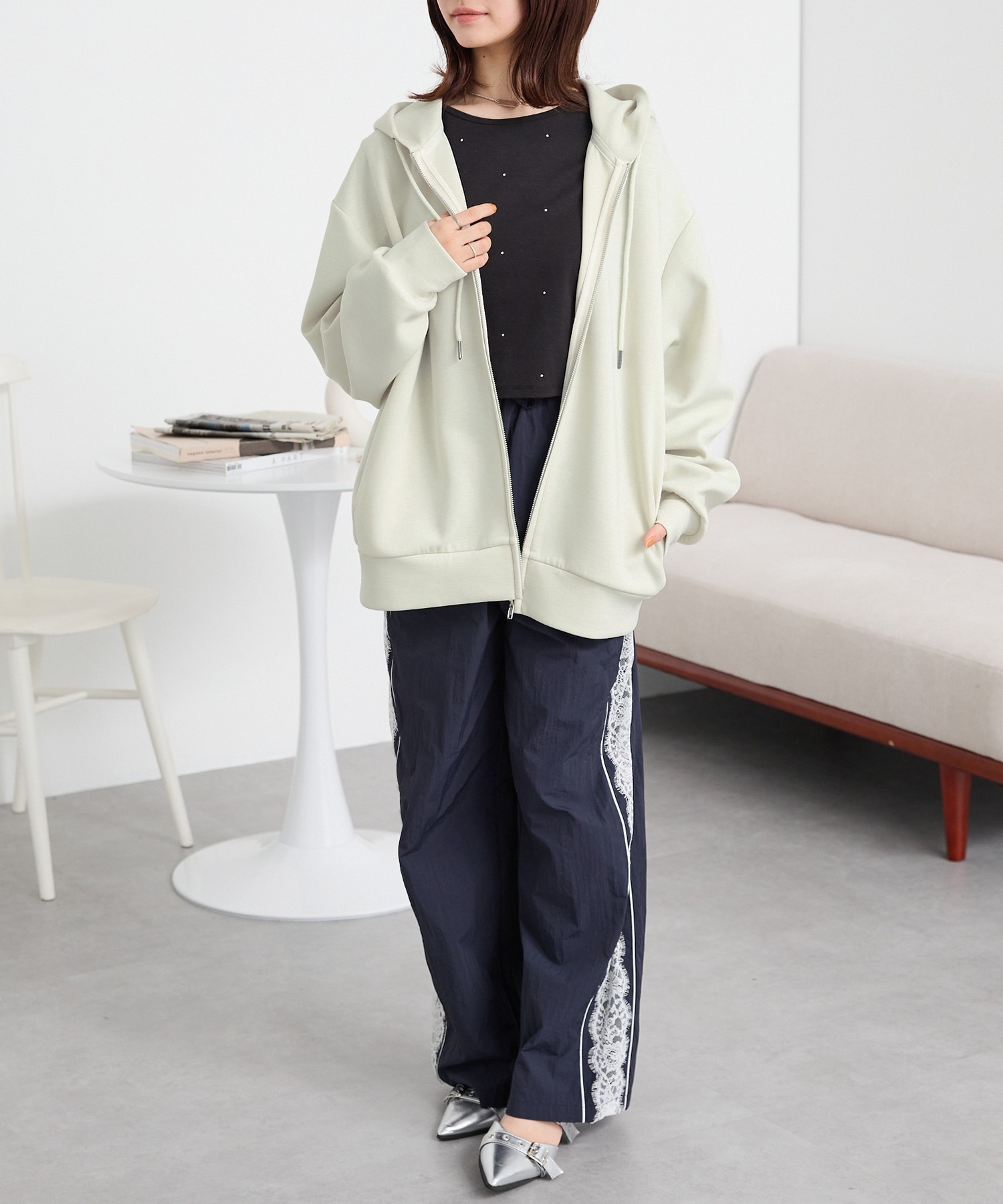 前襟拉鍊與抽繩尾端金屬配件皆統一為霧面銀色,細節質感滿分