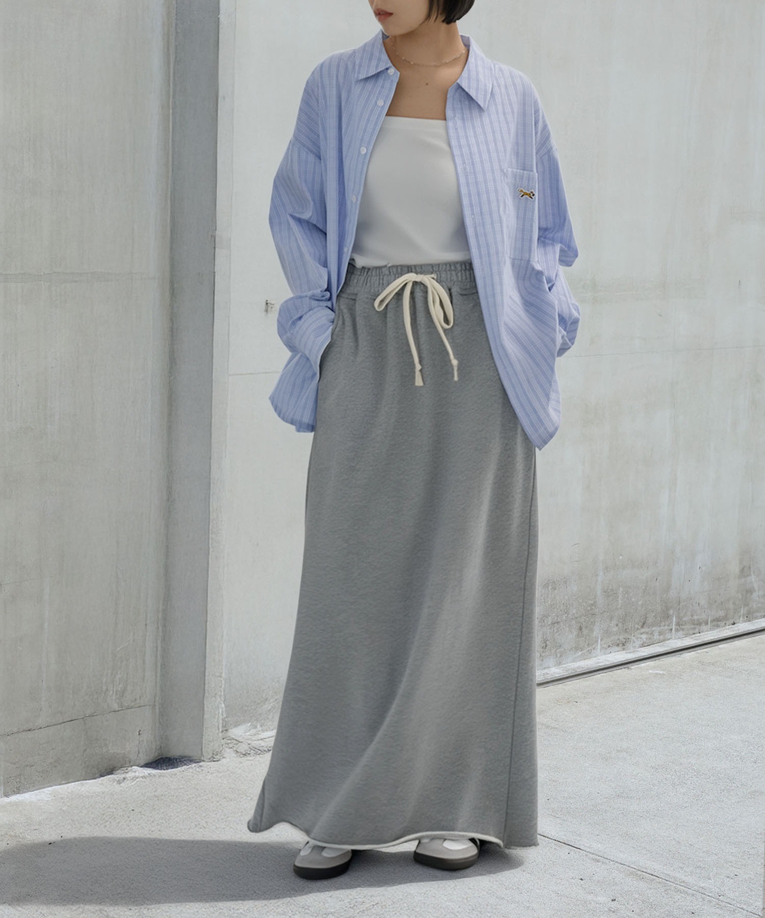 衣長約落在臀部位置,能安心遮蓋腰部線條。