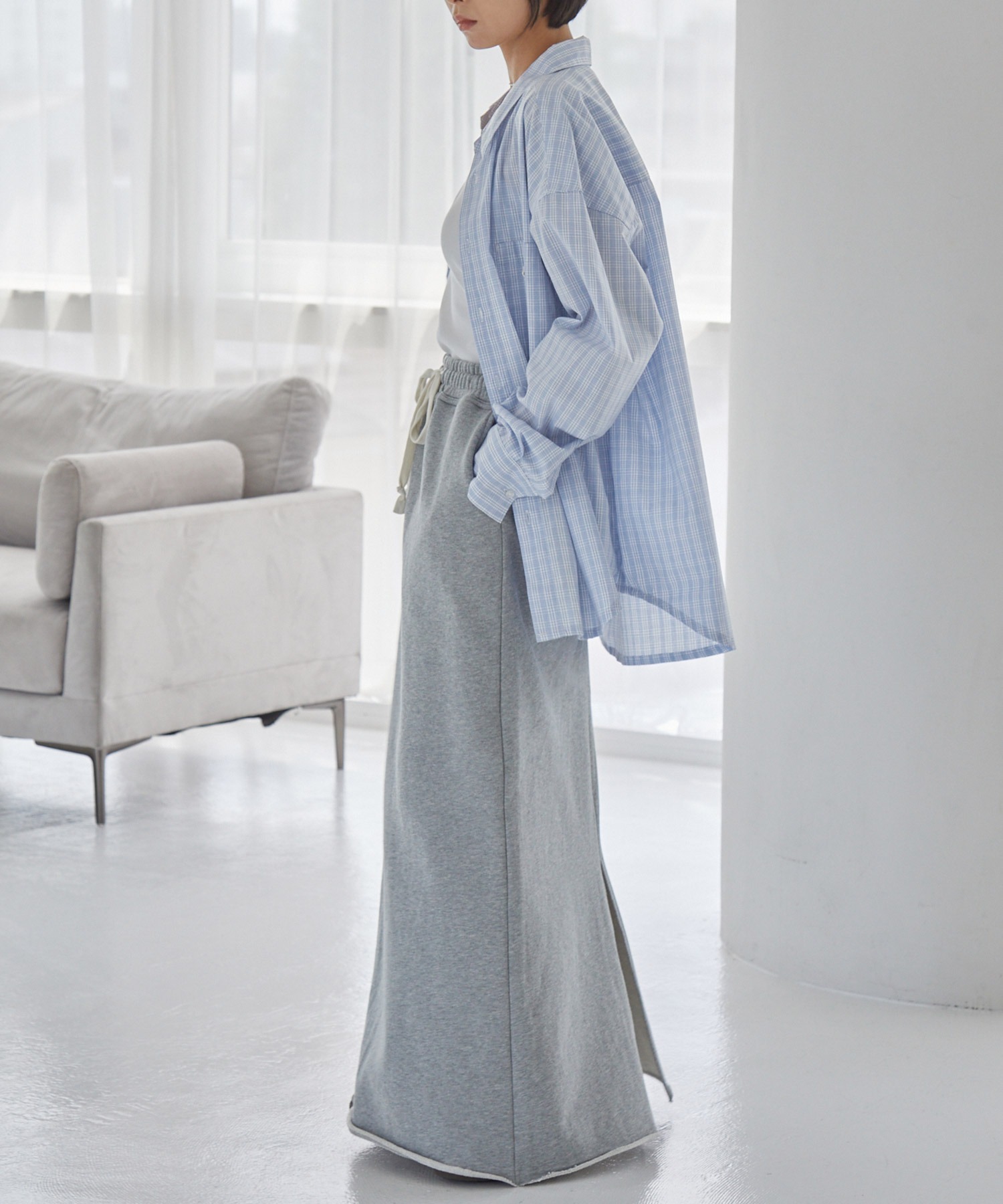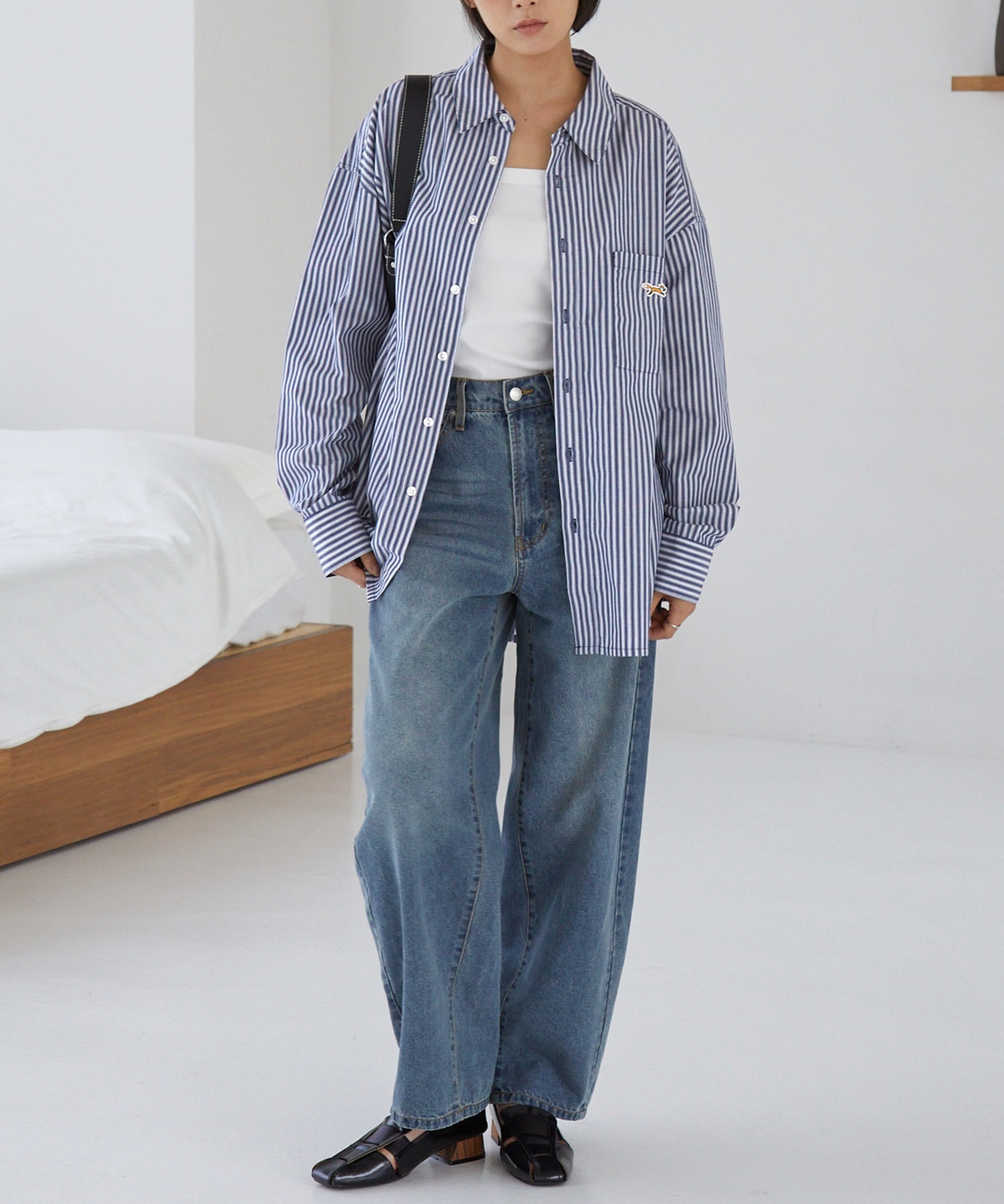 下擺以 圓弧剪裁 收尾,不論紮進或放出穿著都很好看。