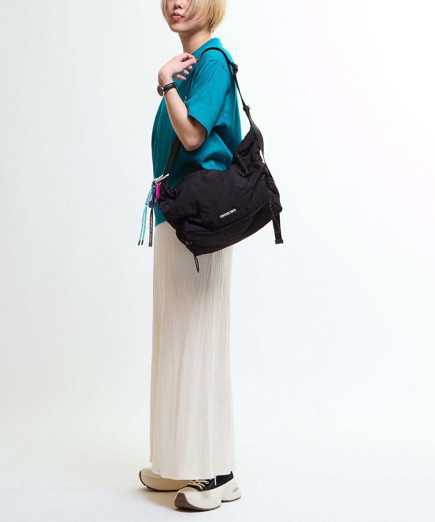 這款肩背包採用 霧面質感的尼龍材質,兼具休閒與高雅風格。