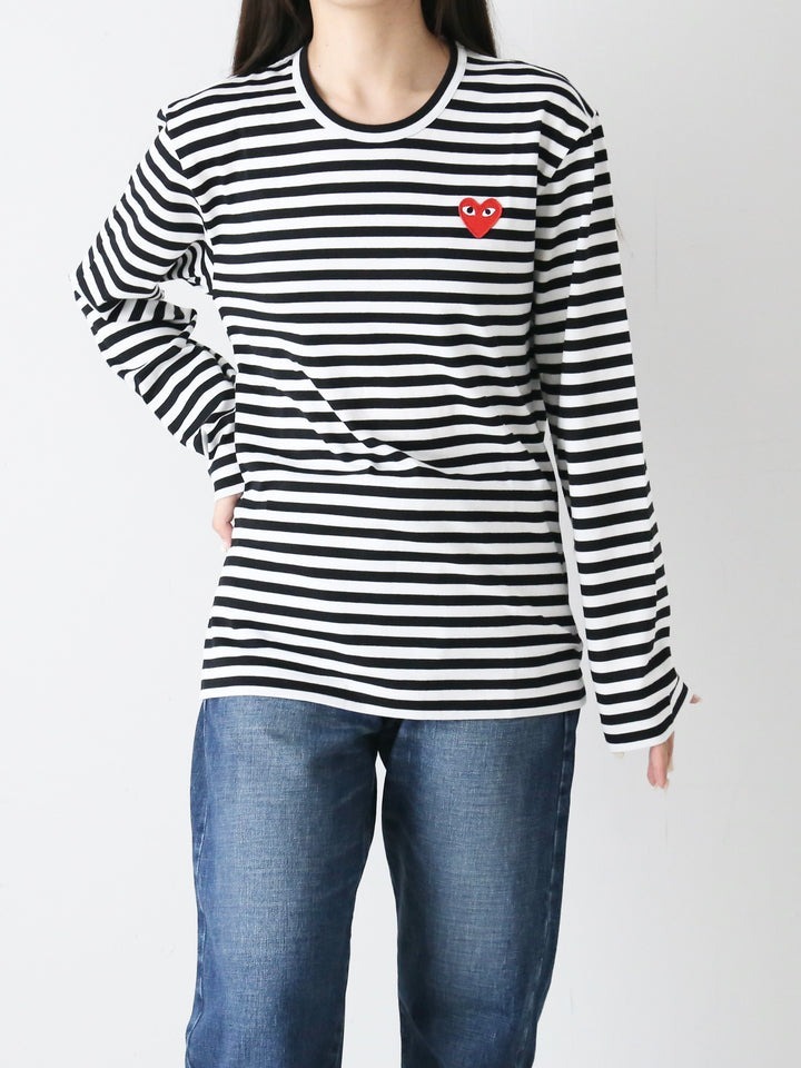 預購┃日本製 男女共版 川久保玲 CDG PLAY 刺繡 條紋 紅愛心 愛心 長袖