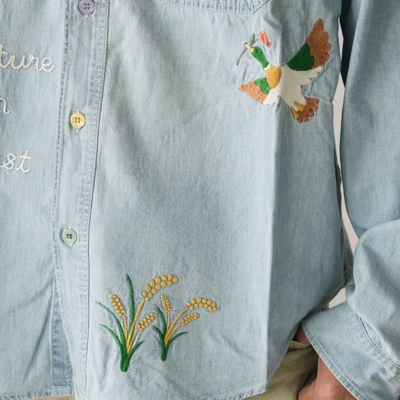 現貨┃日本製 HUMAN MADE CHAMBRAY WORK SHIRT 刺繡 牛仔 鴨子 長袖 襯衫
