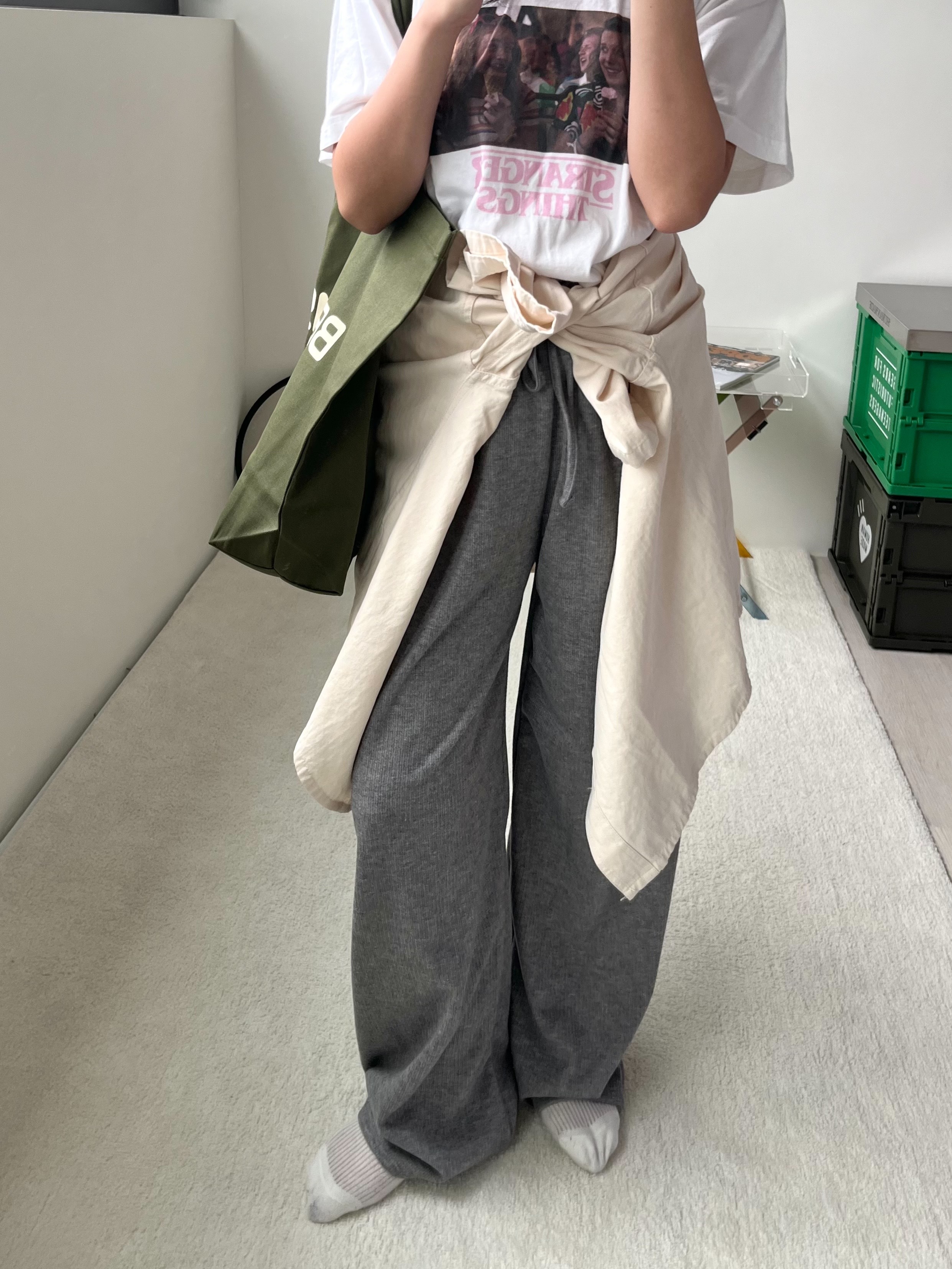 現貨┃韓國選品 韓國製 綁帶 鬆緊 壓紋 落地 直筒褲