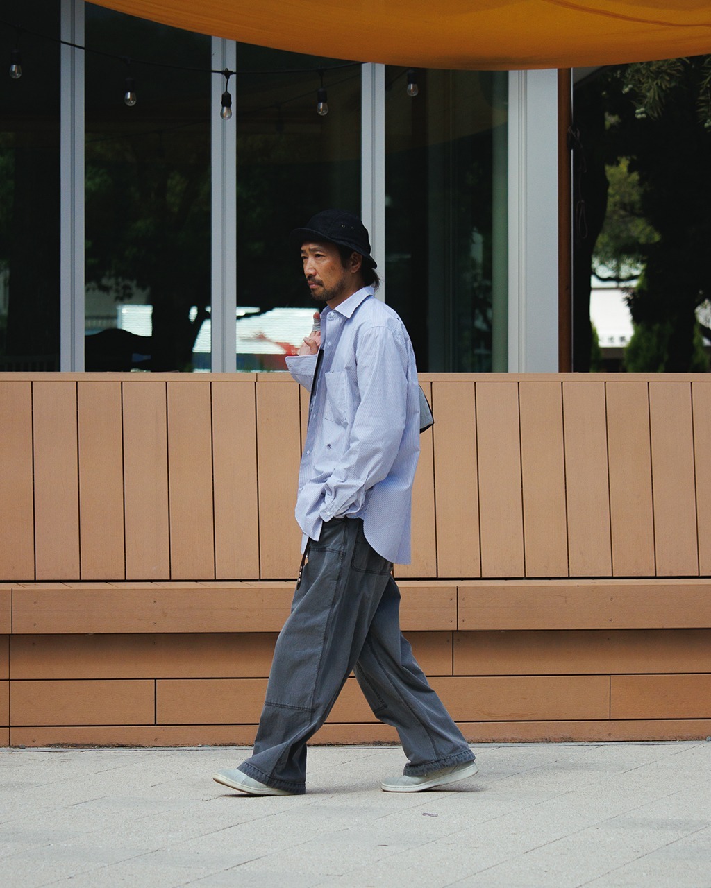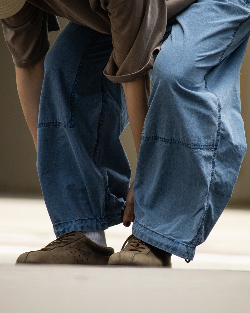 灰色款使用硫化染料染色的棉節紗為經紗,質感自然