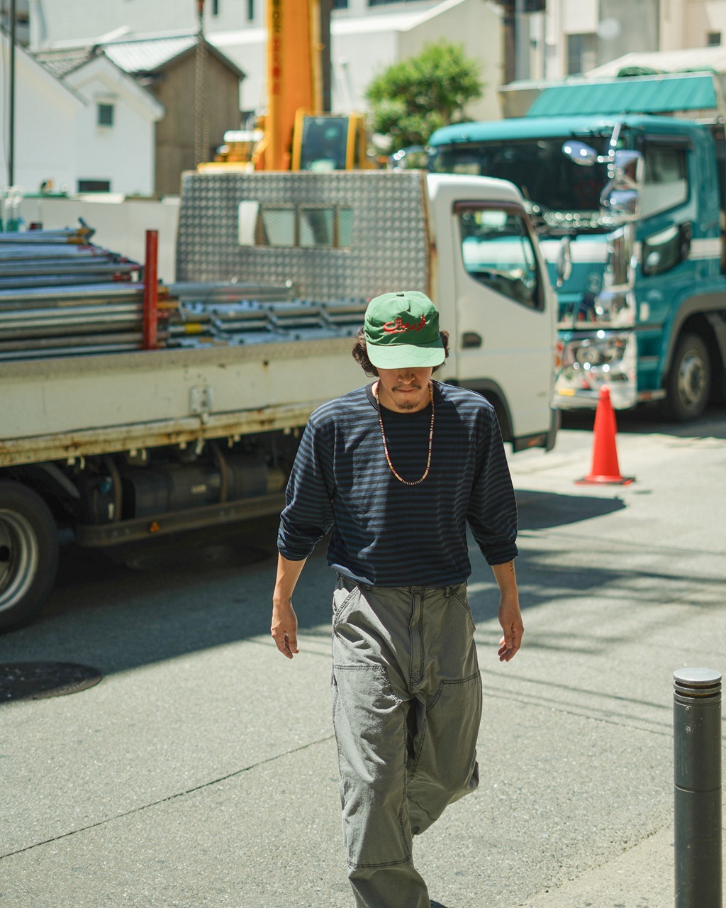 經紗使用靛藍染色棉質節紗,緯紗使用再生尼龍