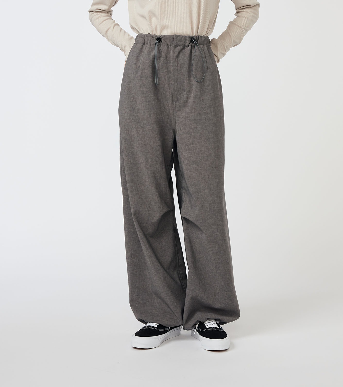 褲腳附有抽繩,可依照喜好調整輪廓與穿搭風格