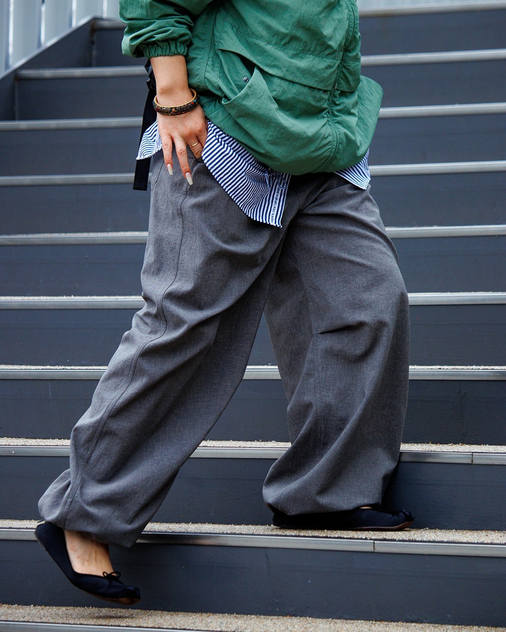寬版剪裁,臀部與大腿帶有份量感