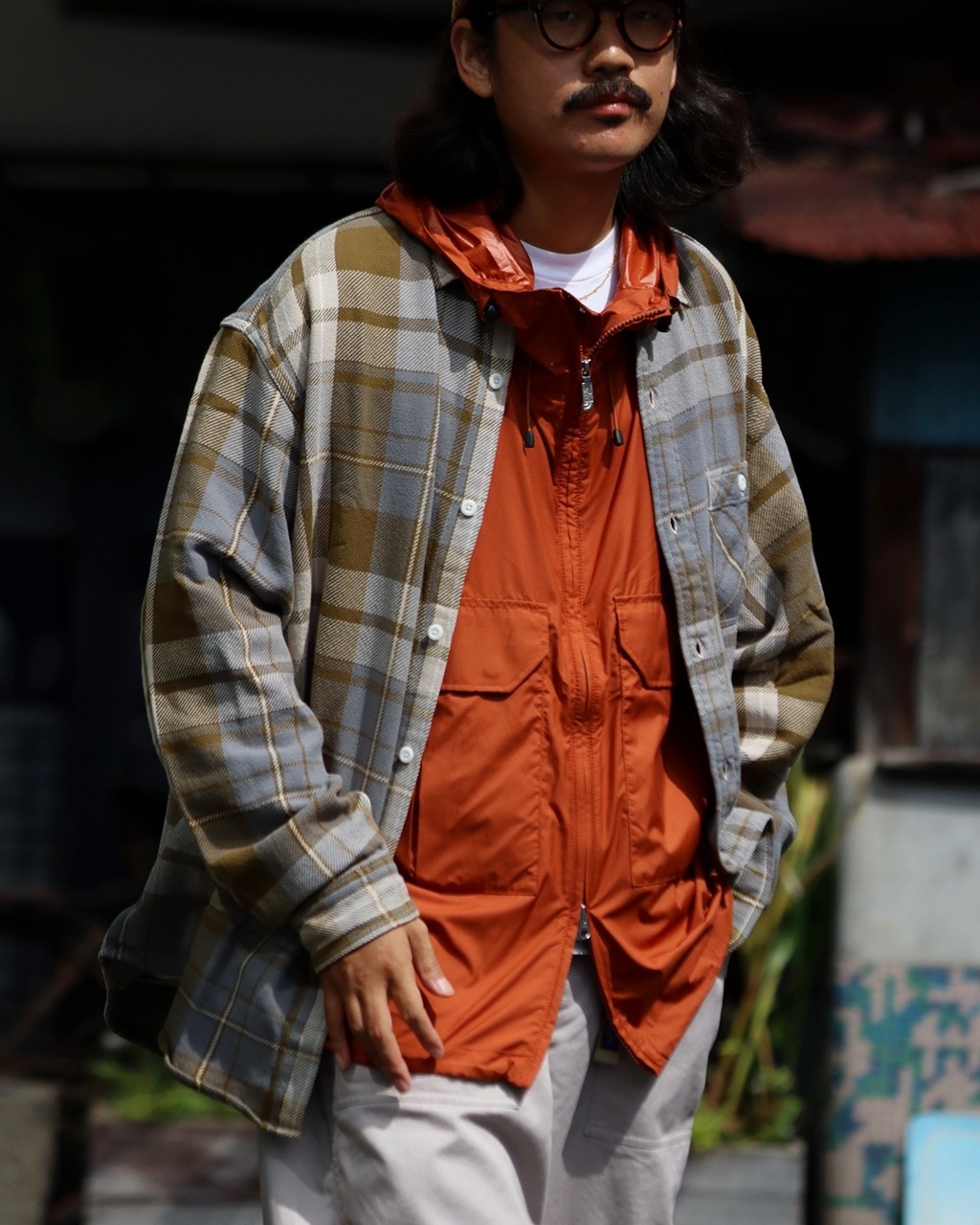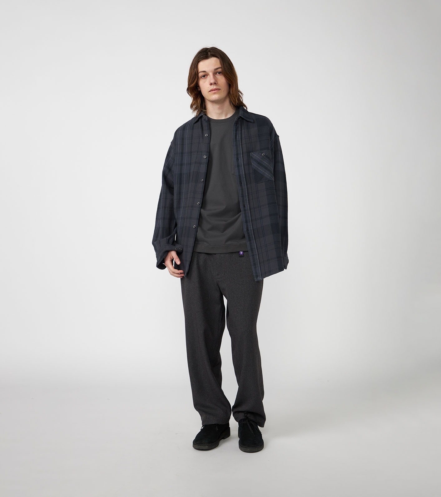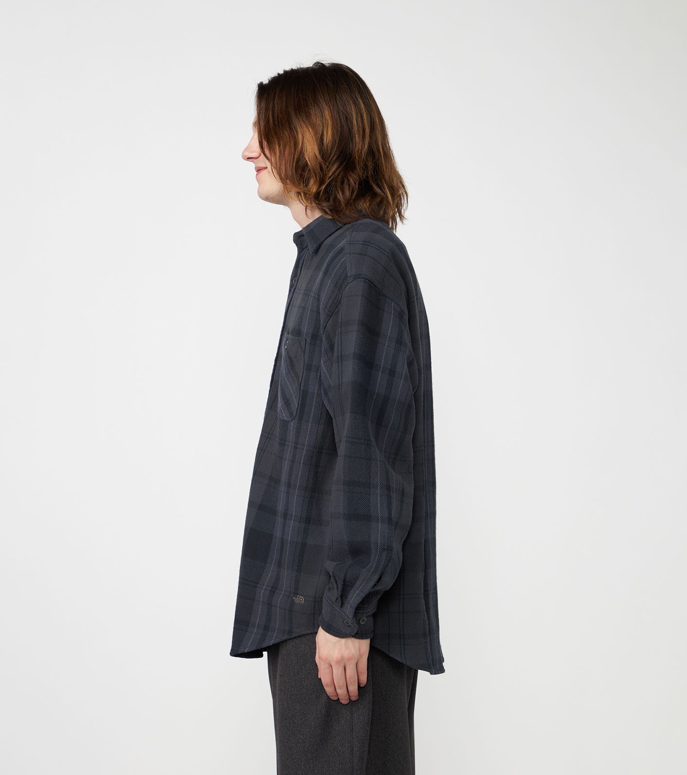 採用 有機棉法蘭絨格紋布料 製成的標準領襯衫