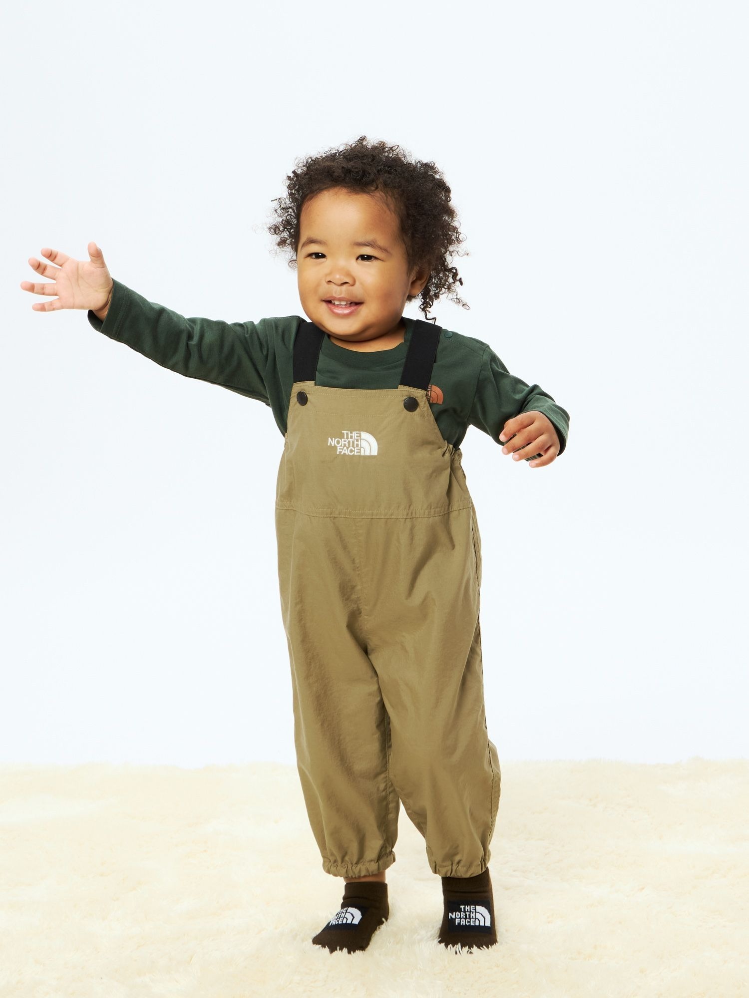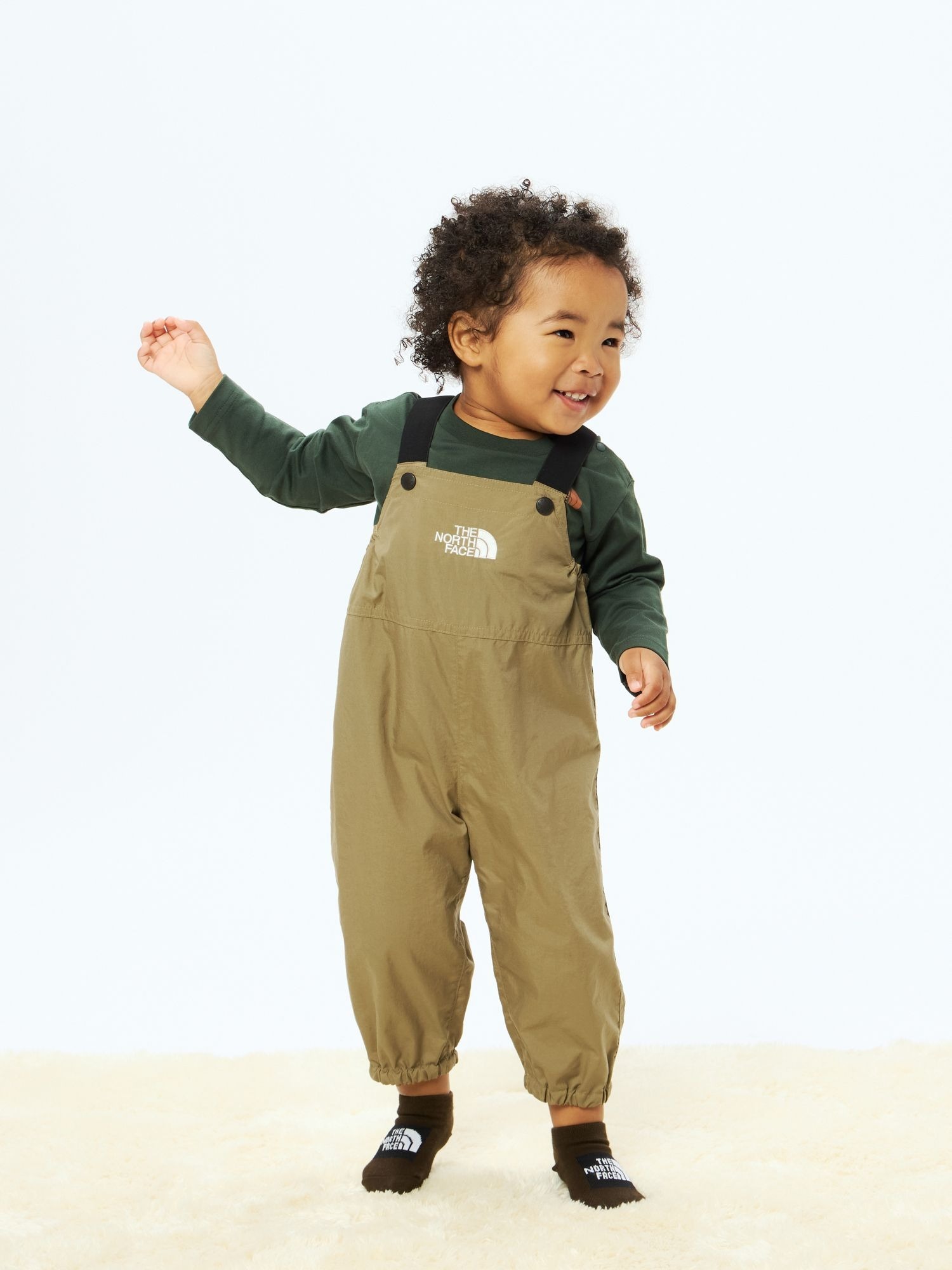 專為玩土、在森林中散步等戶外活動設計的寶寶款連身工作褲。
