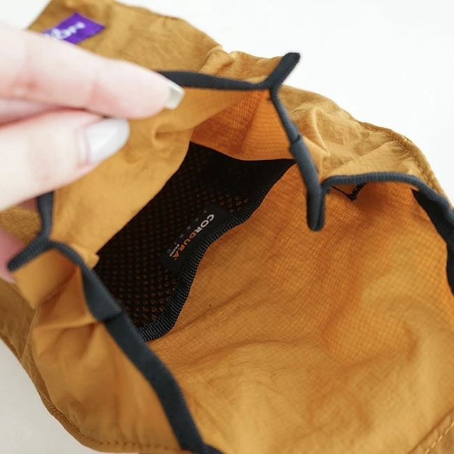 肩帶放置帶有徽標的 D-can壓住包的尖端