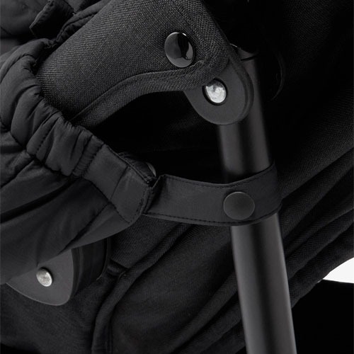 這是一款可以安裝在揹巾或嬰兒推車上的保暖罩。經過升級後,下擺設計更加立體,整體輪廓更俐落。