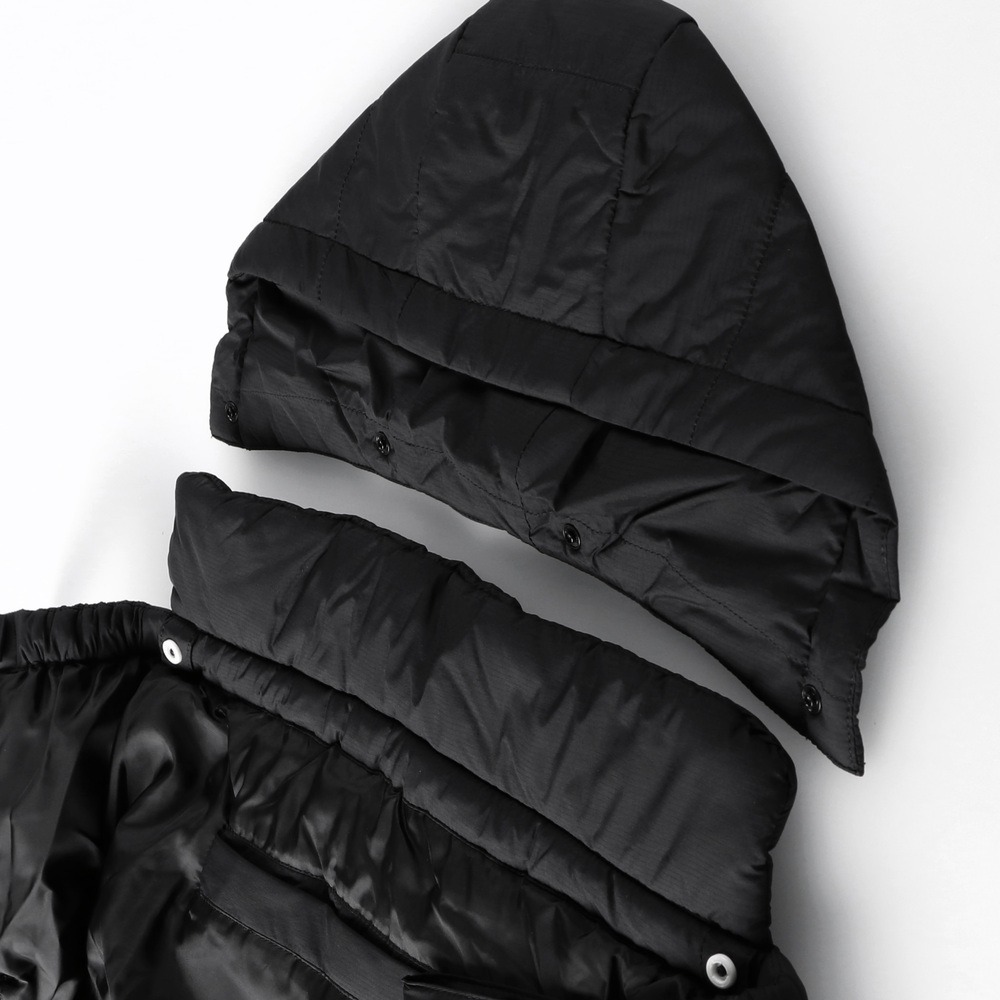 帽兜部分可透過壓釦拆卸。具備可收納壓縮的設計,攜帶外出非常便利。