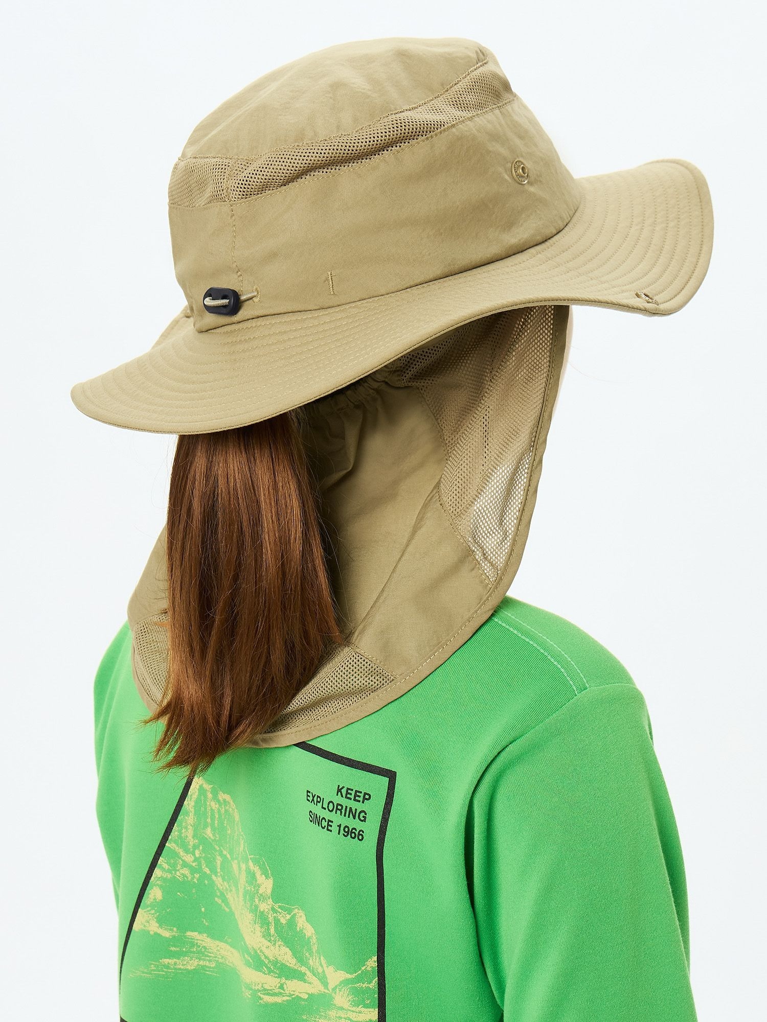 可拆式防曬披肩設計,透過掛勾即可輕鬆卸除,特別適合保護頸部避免日曬。