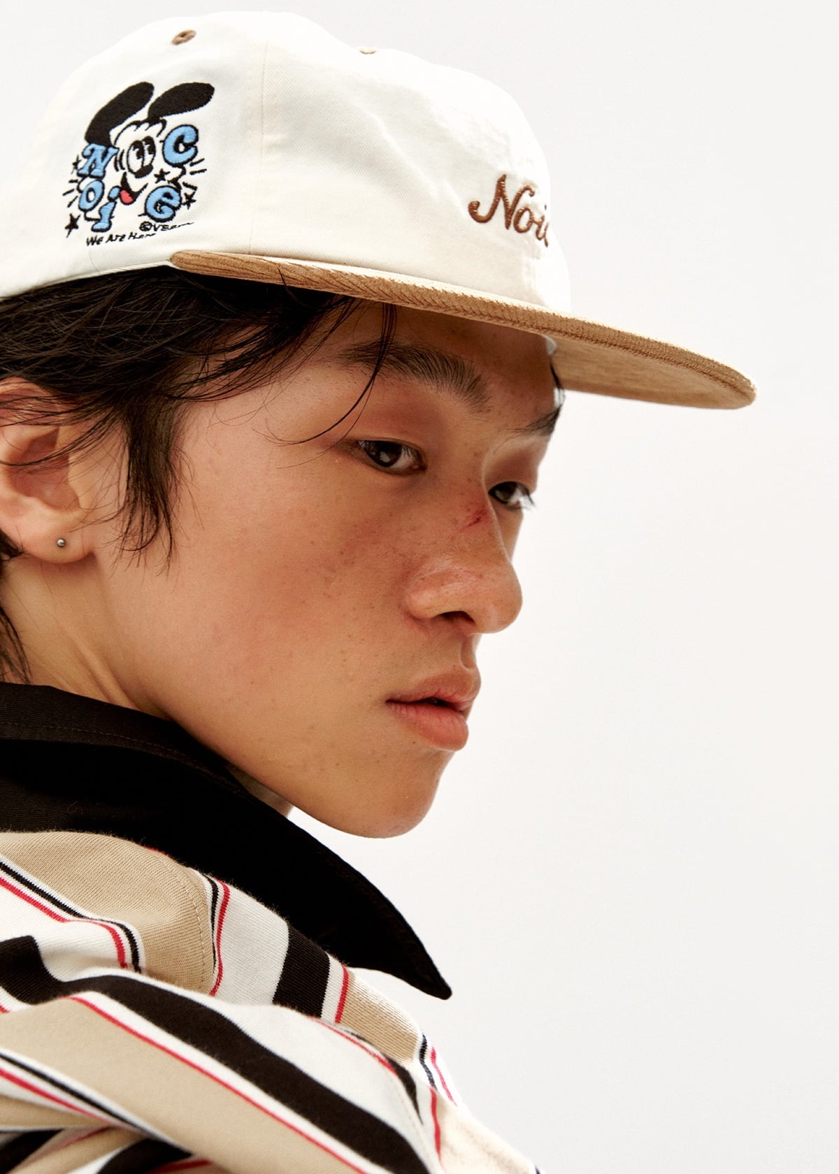 這是一頂以 VERDY 原創 NOICE 標誌 為特色的 六片式帽。