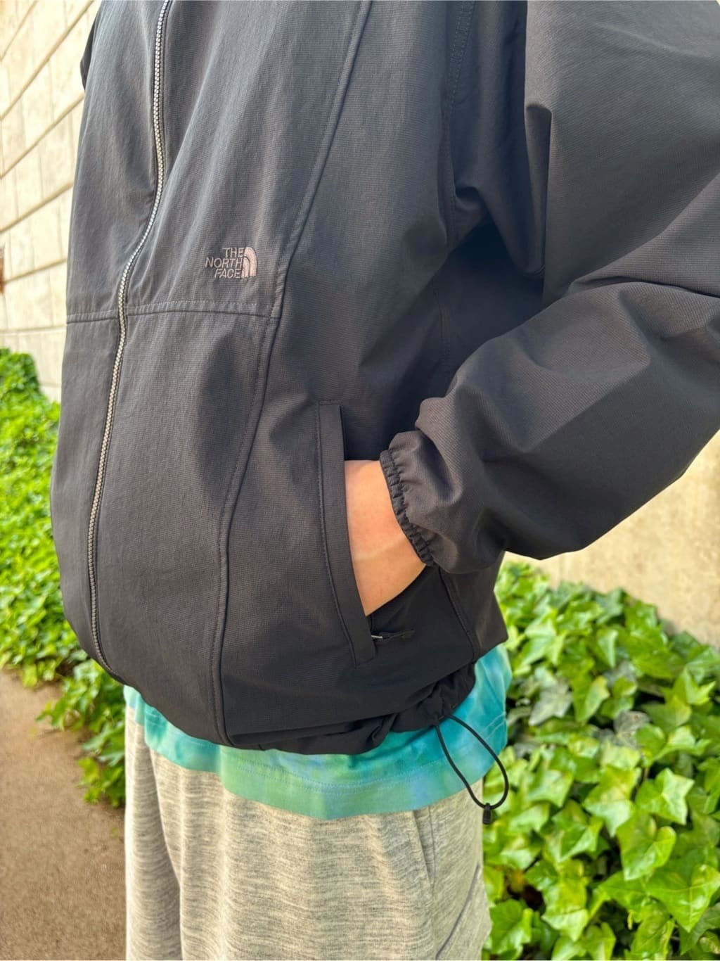 下擺兩側配有調節繩與束口設計,可調整穿著的貼合度與輪廓。