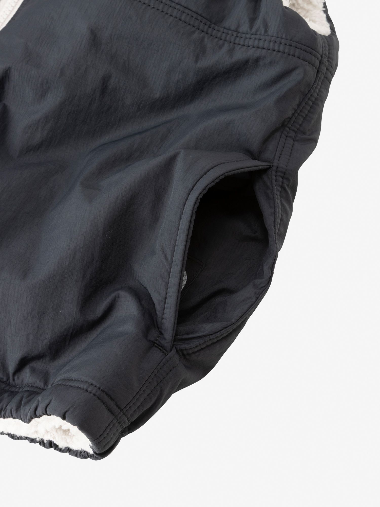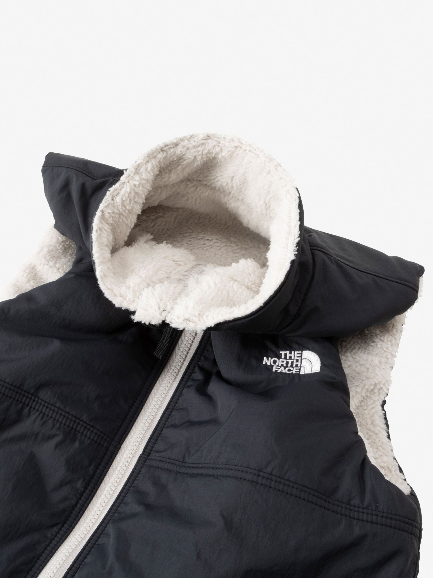 搖粒絨面採用長絨的雪帕搖粒絨;布織面使用輕量的防裂紋尼龍(Ripstop Nylon)。並支援可透過專用拉鍊與外套連結的 ZIP IN ZIP 系統。
