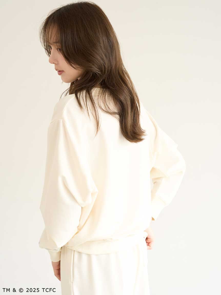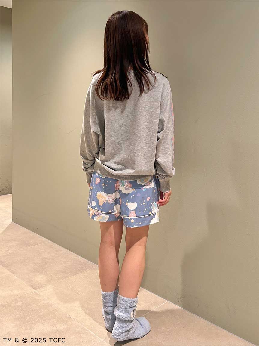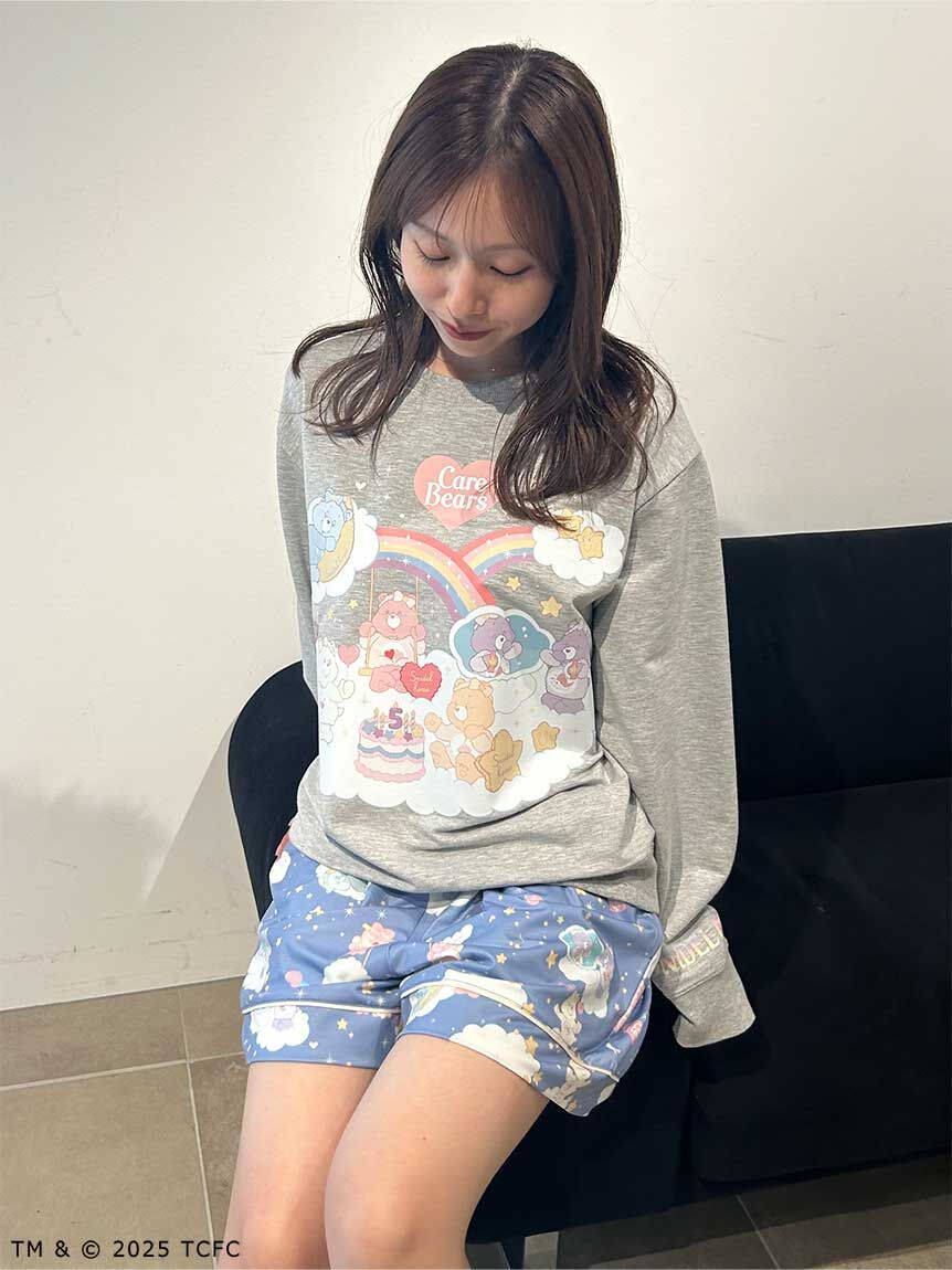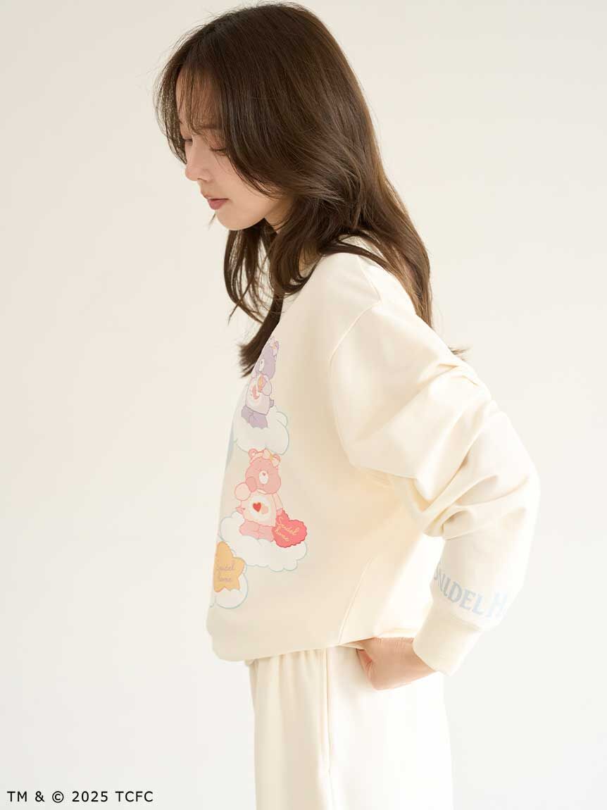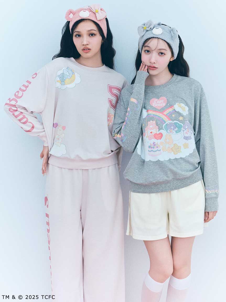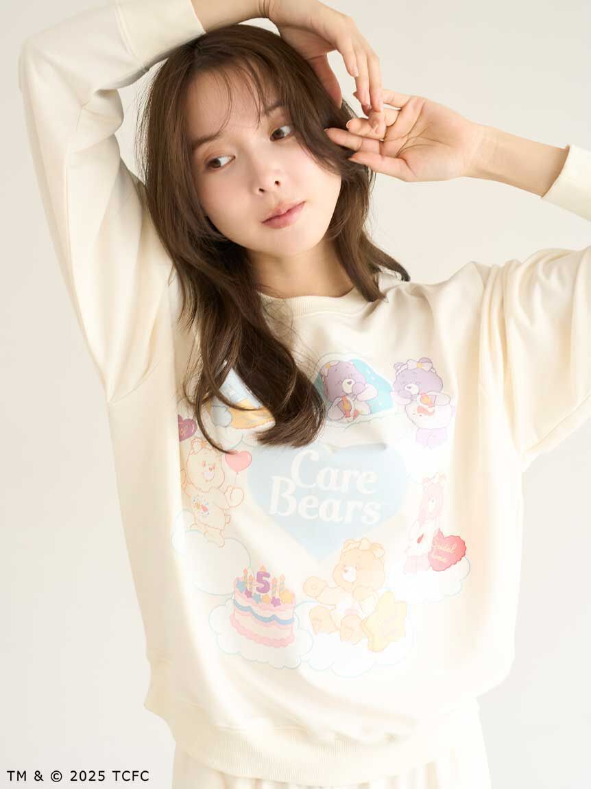上衣為寬鬆版型的套頭衫(Pullover),正面印有五隻 Care Bears 一起慶祝生日夜的插圖,並加入象徵五週年的「5」號數字設計。