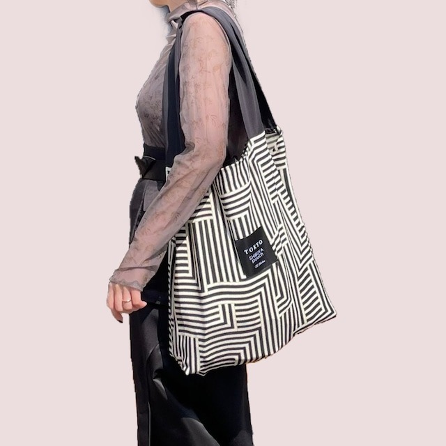 現貨┃日本製 TOKYO SHIBUYA POUCH 迷幻條紋 購物袋 環保袋 手提袋 收納